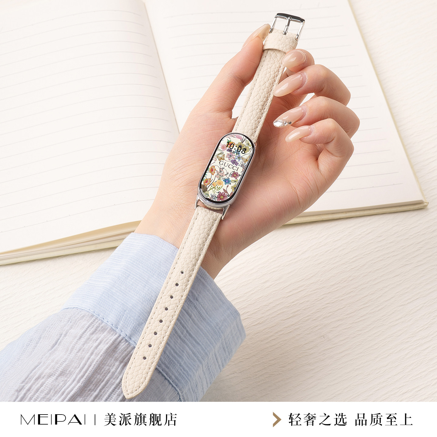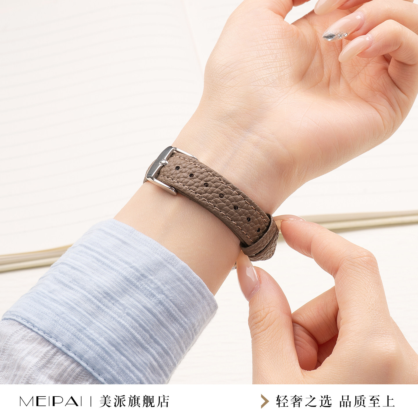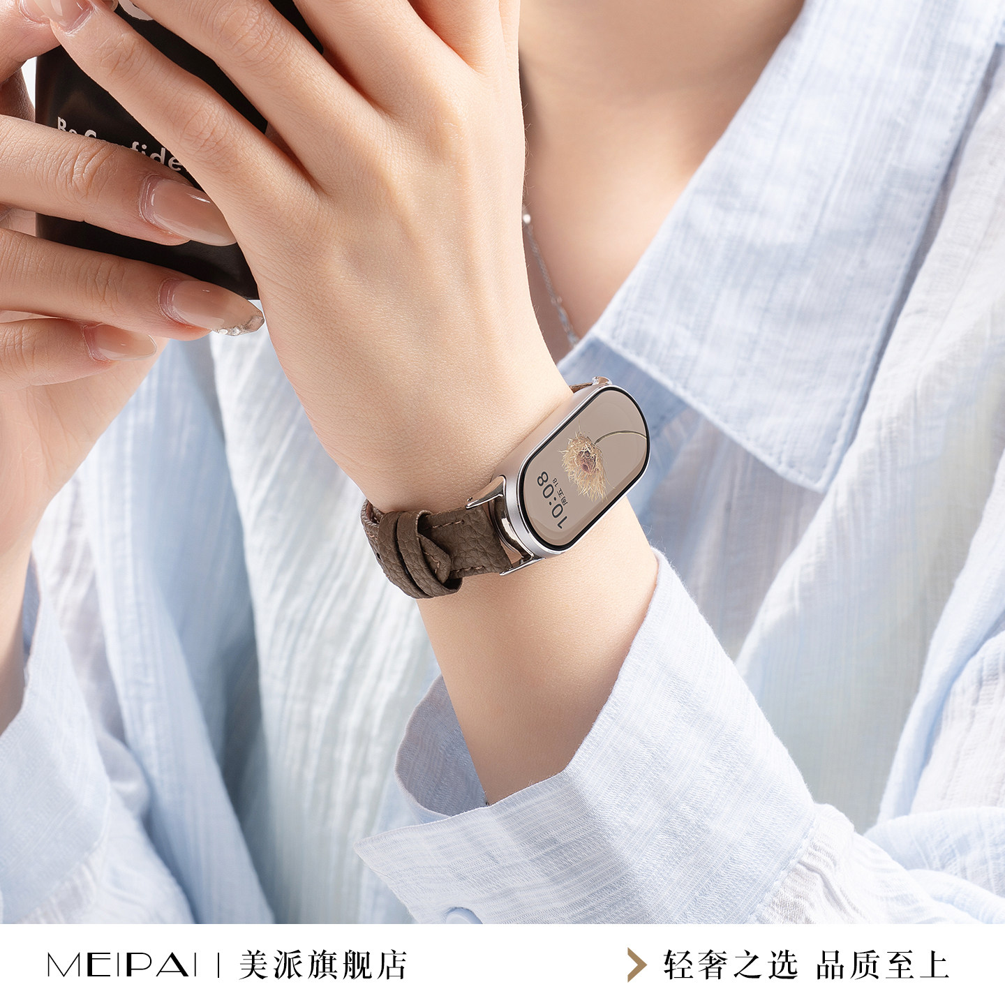 美派适用小米10荔枝纹皮革手环带