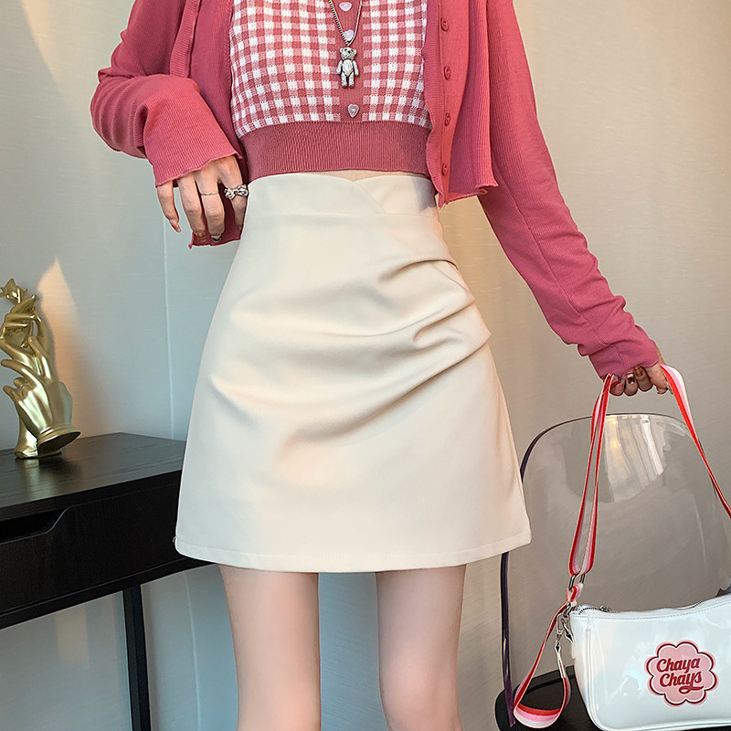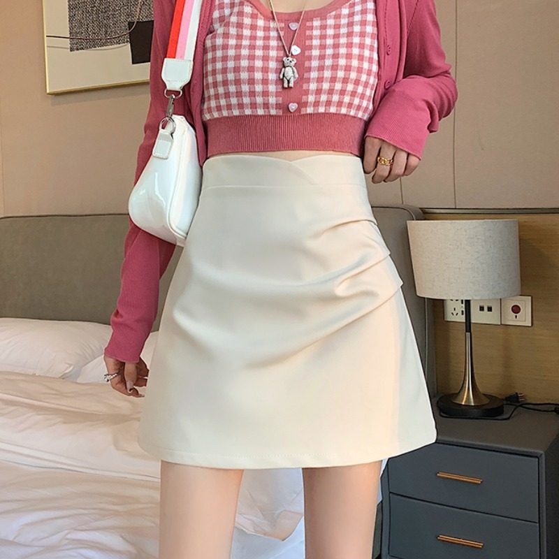 春夏季黑色新款抽褶高腰不规则半身裙女士显瘦百搭A字包臀裙短裙
