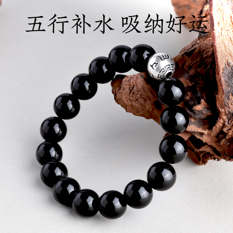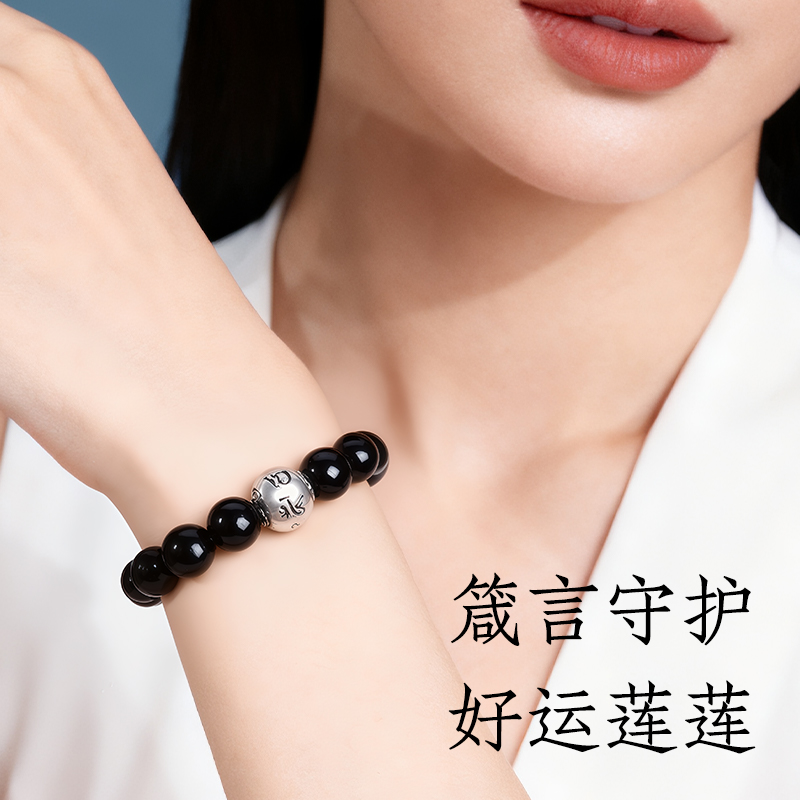 宫中礼黑曜石手串女款2025新款六字真言转运珠手链男款生日礼物