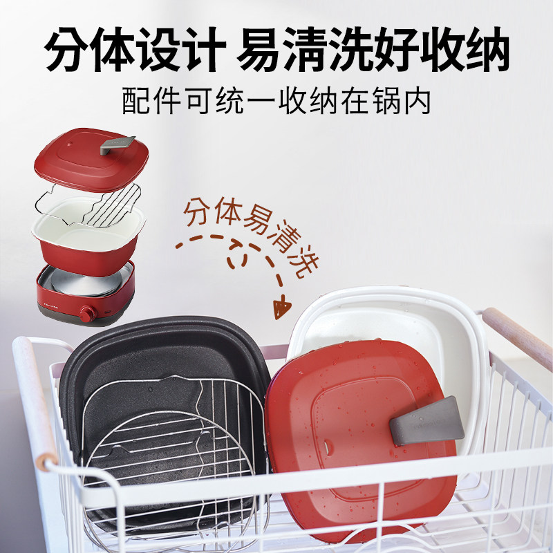 日本丽克特电炒锅多功能料理锅火锅家用电炒菜炒锅一体式小电煮锅