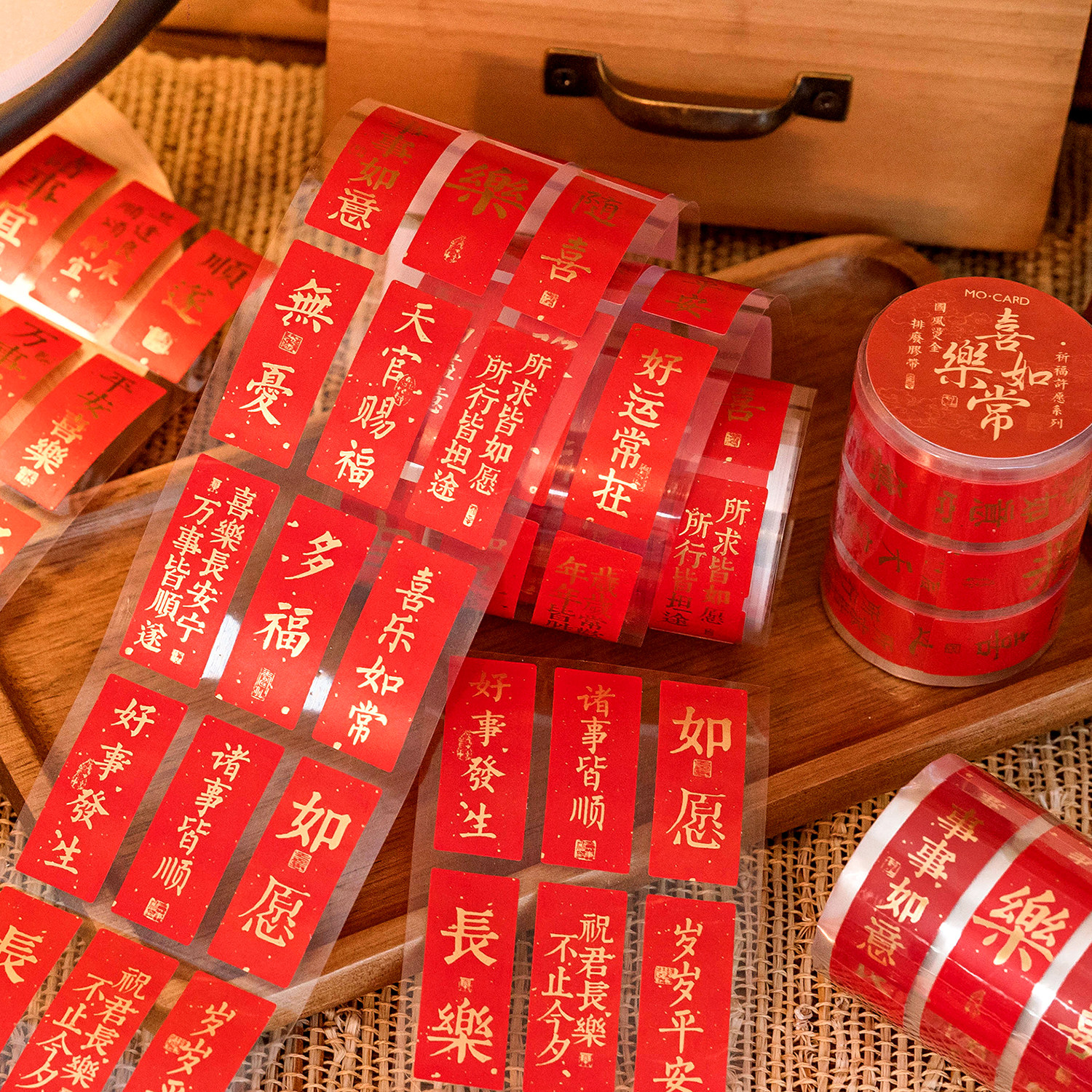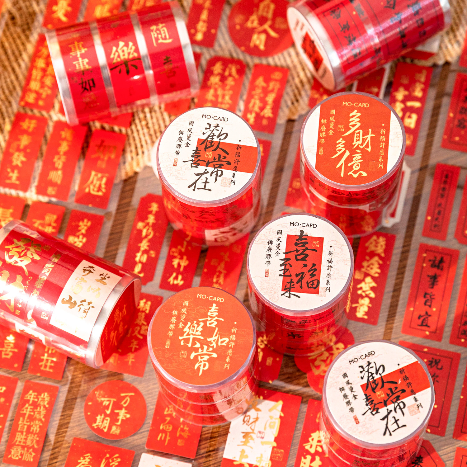 祈福许愿中国风新年祝福书法胶带烫金文字手帐装饰手机壳贴纸素材