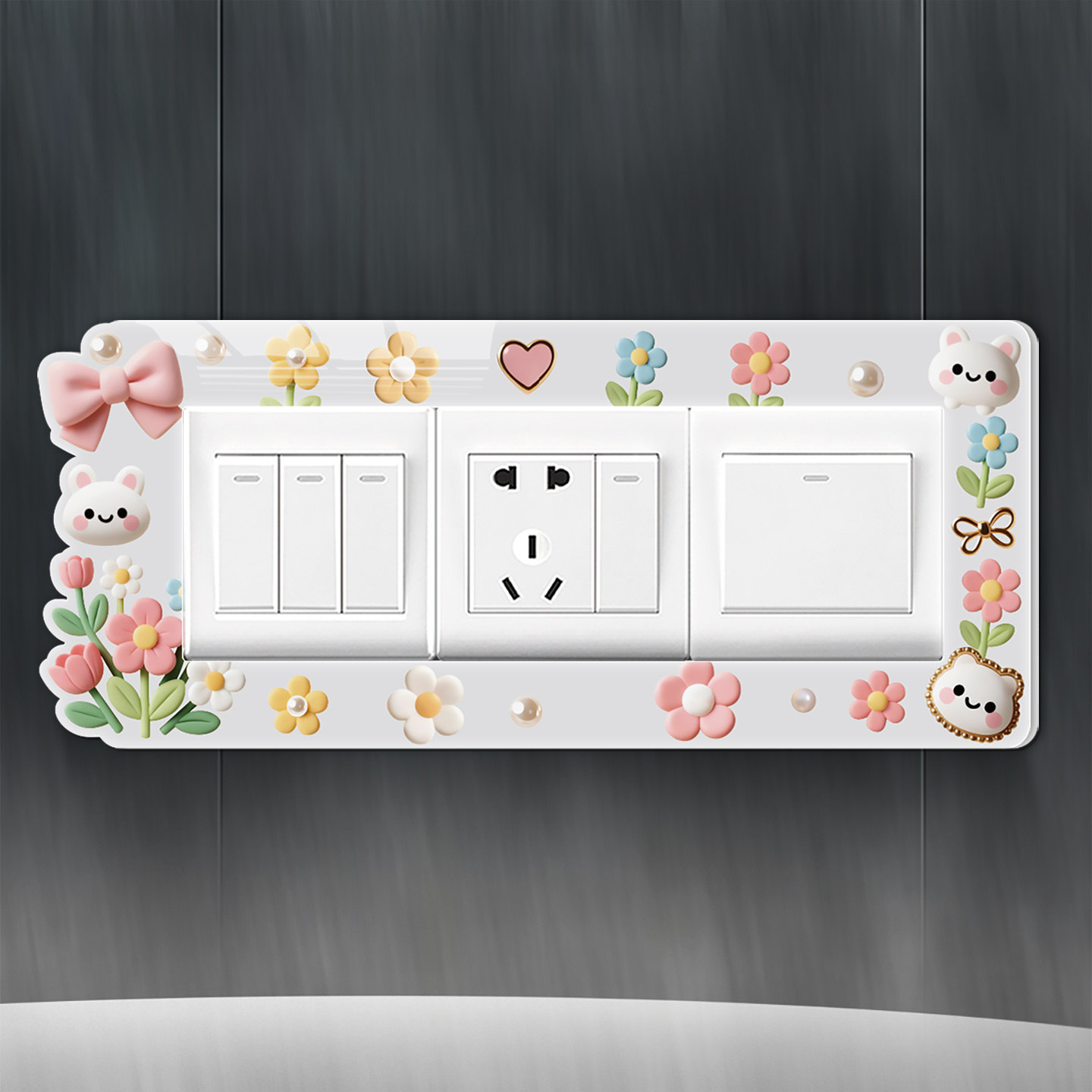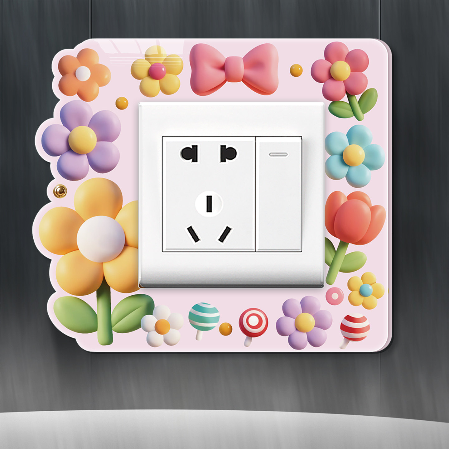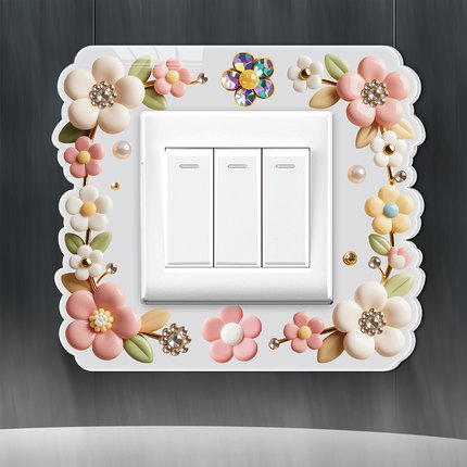 花朵开关贴装饰贴可爱卡通创意墙上遮丑防脏贴卧室插座美化边框套