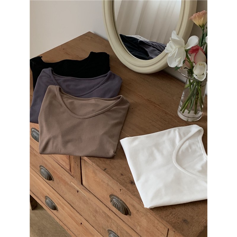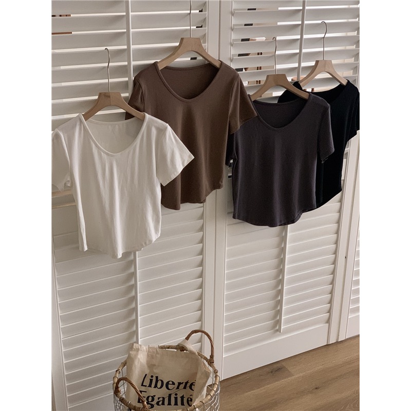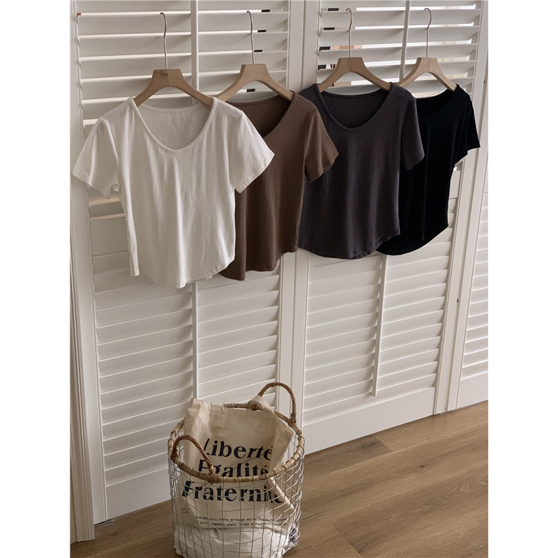 ◆~鹅蛋领超柔纯棉の基础款纯色短袖白色正肩T恤小衫