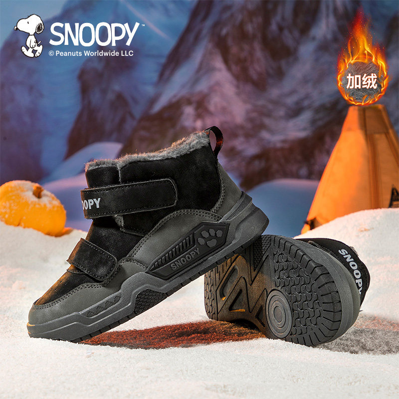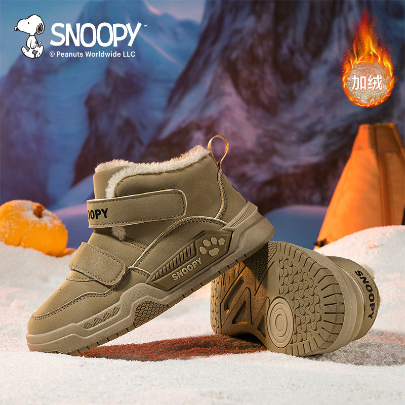 史努比童鞋男童大棉靴冬季2025新款儿童雪地靴加绒运动鞋女童棉鞋