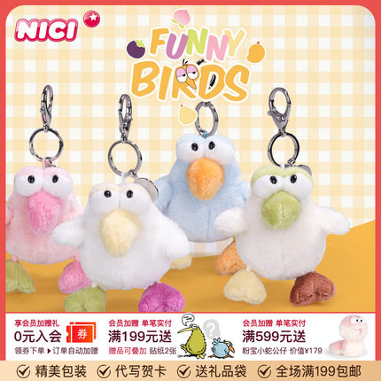 德国NICI桃之夭夭小鸟钥匙扣可爱卡通水果鸟毛绒玩具玩偶礼物挂件