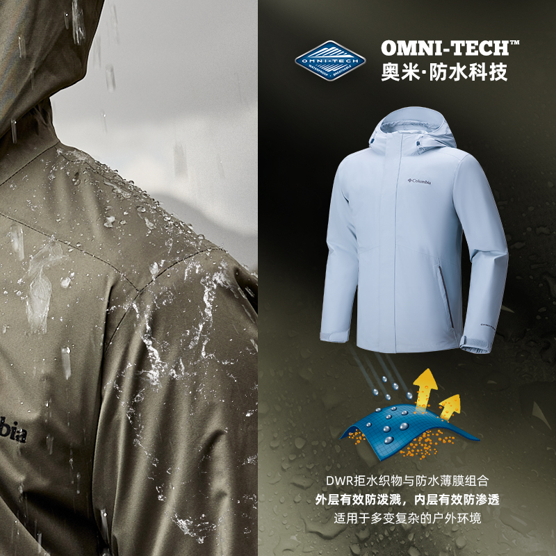 蒋奇明同款哥伦比亚男女银点700蓬鸭绒三合一防水冲锋衣XE5418