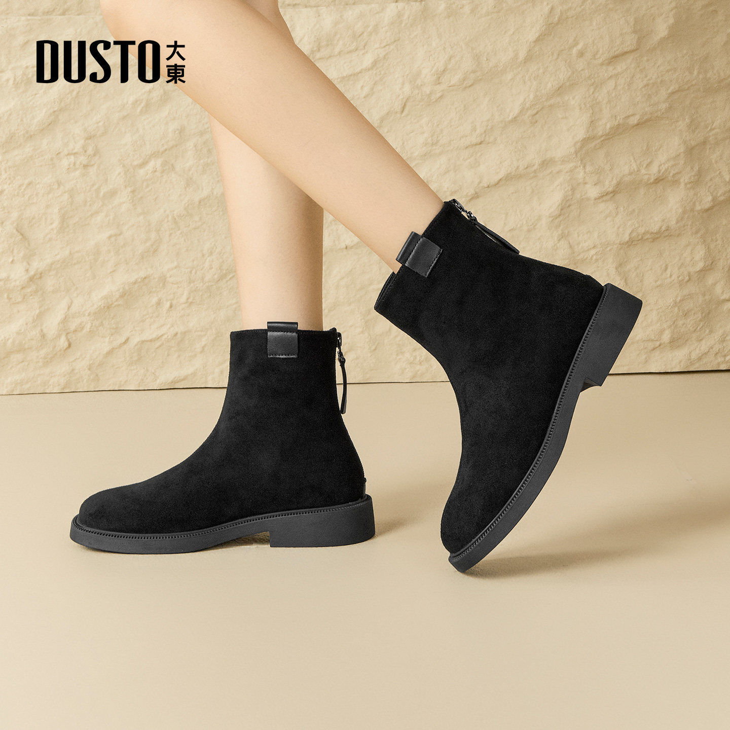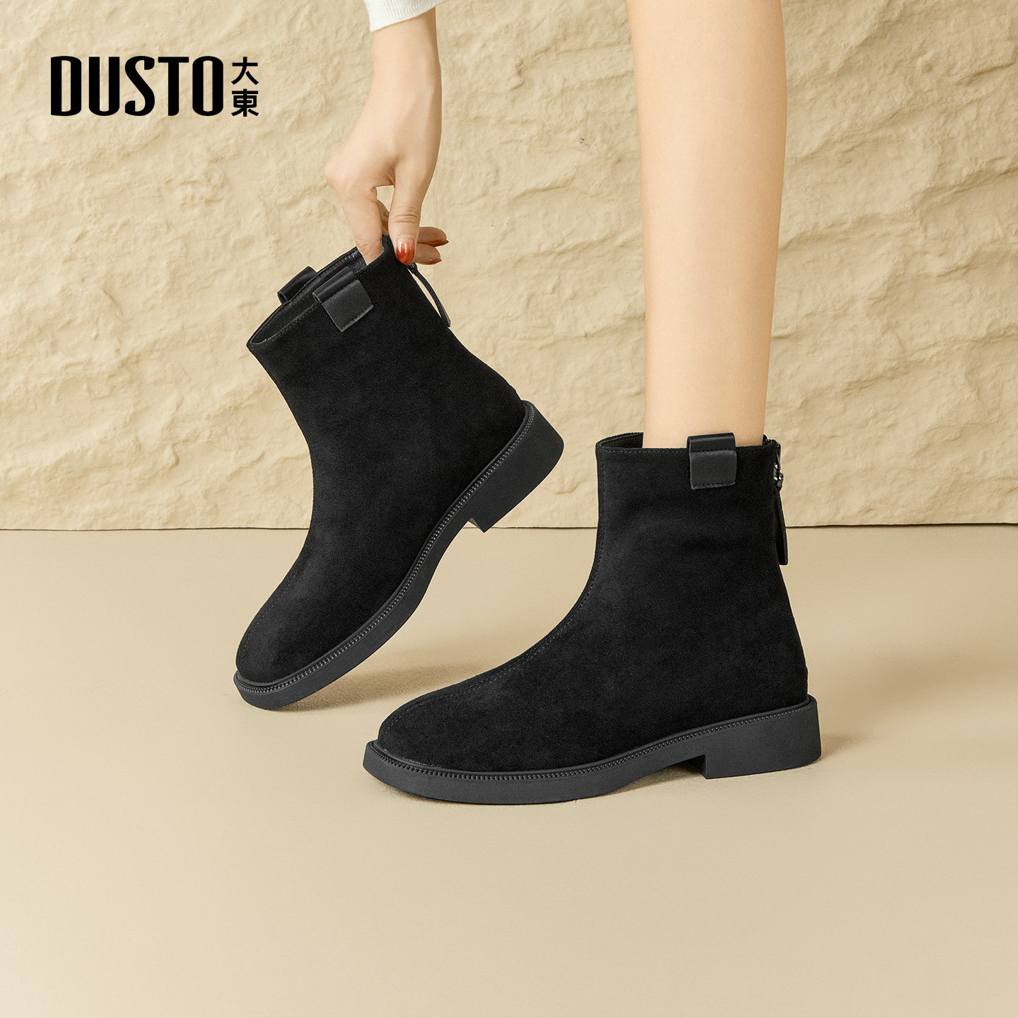 大东磨砂绒面短靴女2026新款秋冬百搭圆头爆款靴子黑色时装瘦瘦靴