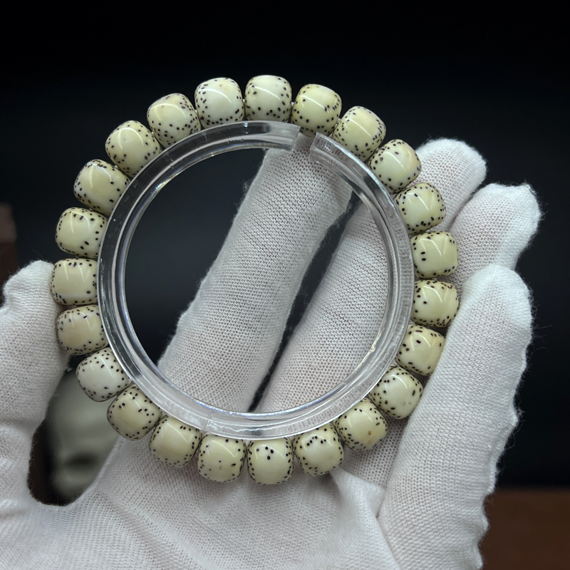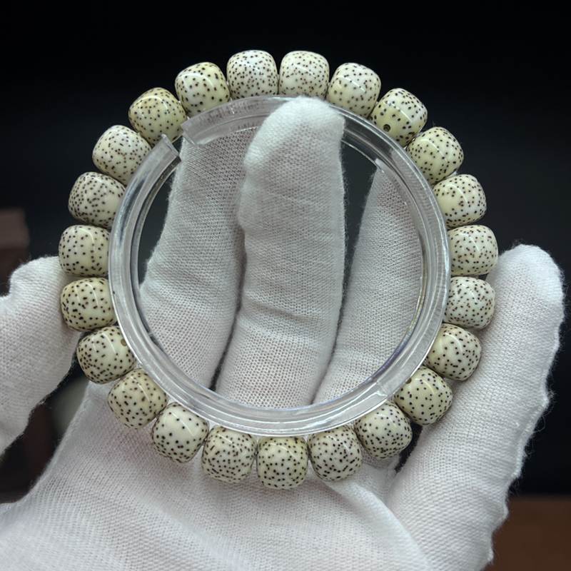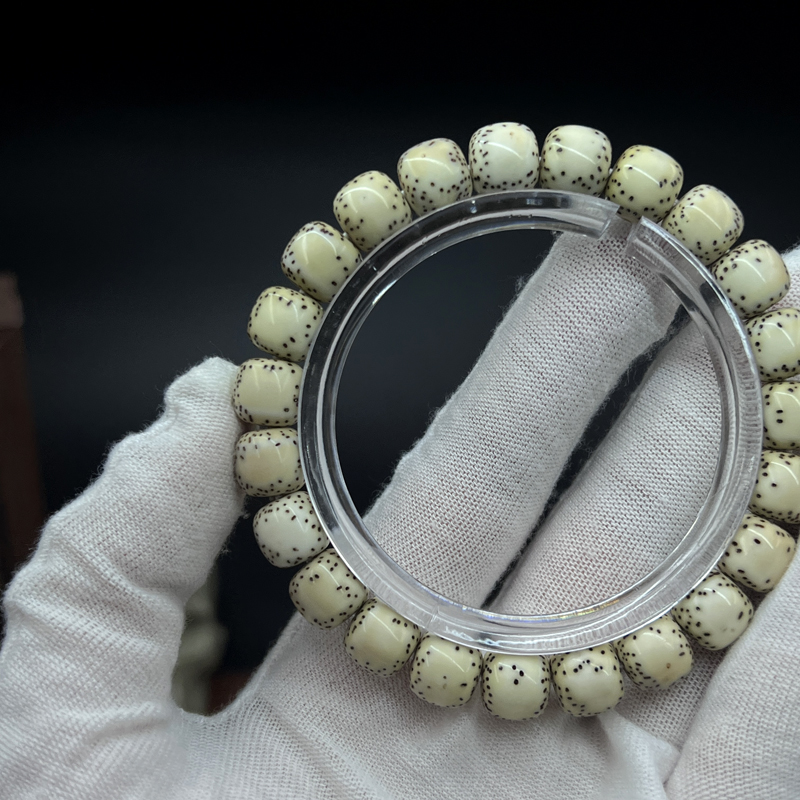 一物一图孤孤品鸡油黄脱脂9*10桶珠双留白原生态同枝星月菩提手串