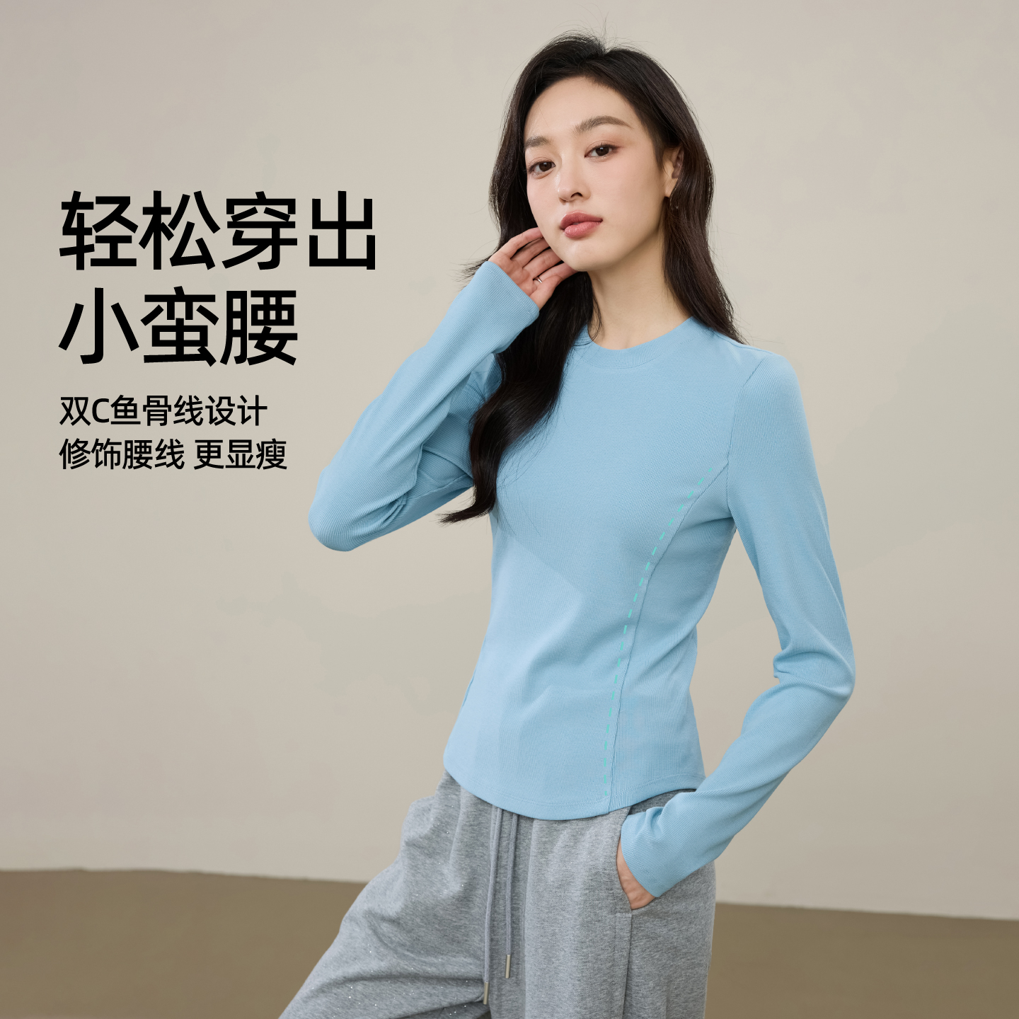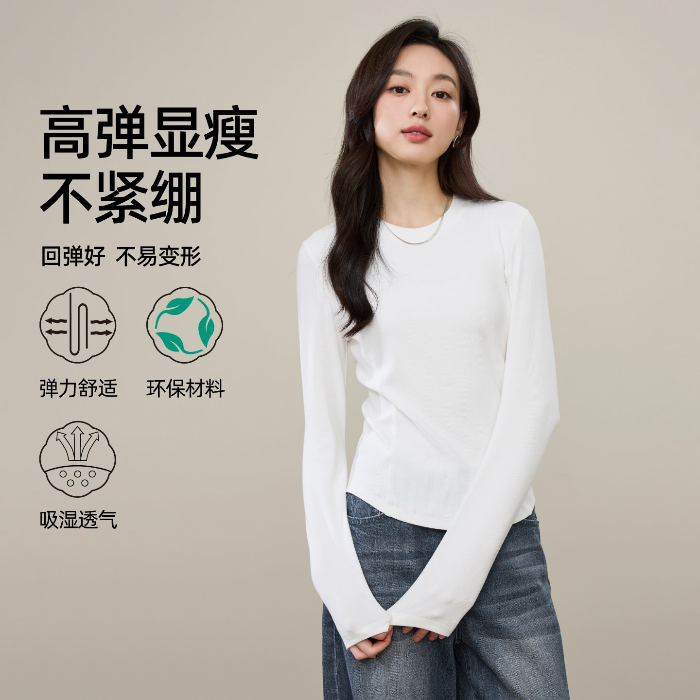 逸阳【小蛮腰】正肩显瘦打底衫t恤女25年秋新款修身长袖内搭上衣
