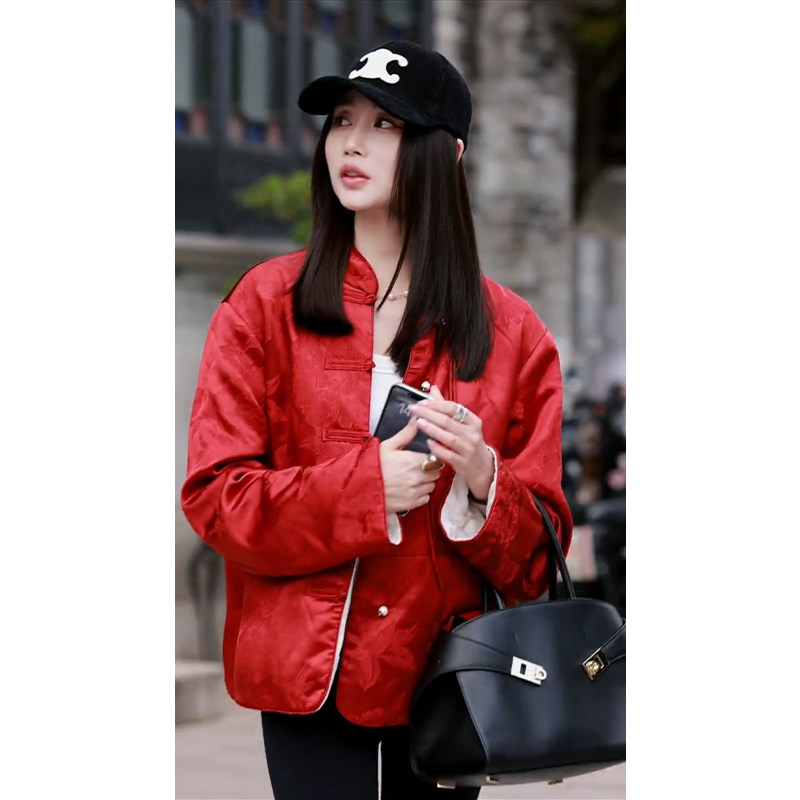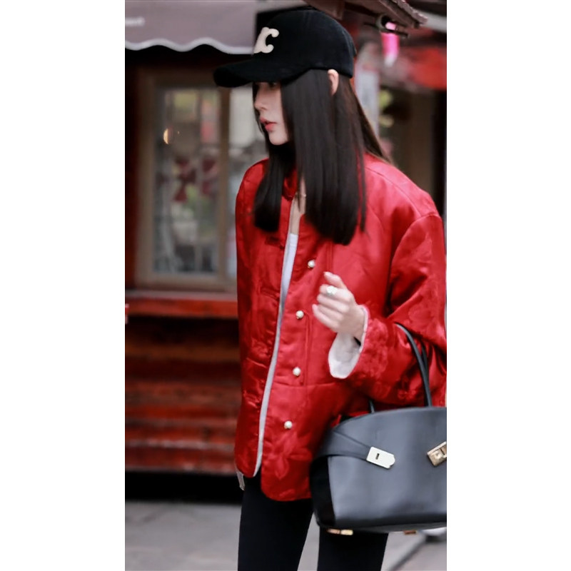 新中式国风盘扣羽绒服2024年冬季新款圣诞新年红色宽松棉服外套女
