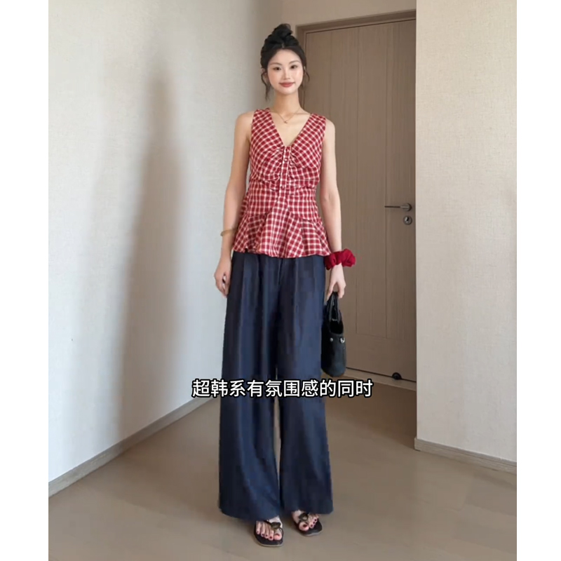 JIAHUI STUDIO 多巴胺穿搭女夏季套装挂脖无袖上衣薄款阔腿牛仔裤