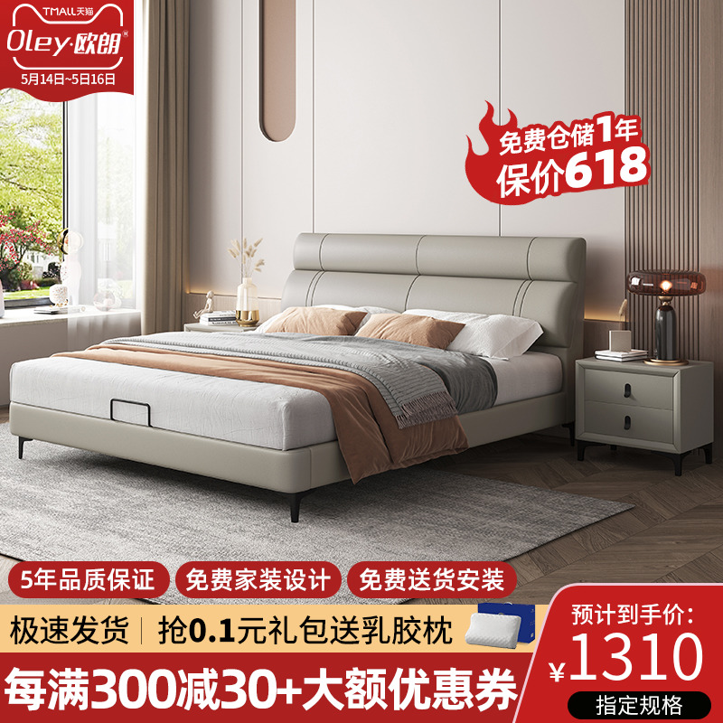 新款主卧皮床意式轻奢双人大床婚床小户型简约现代软包科技布艺床