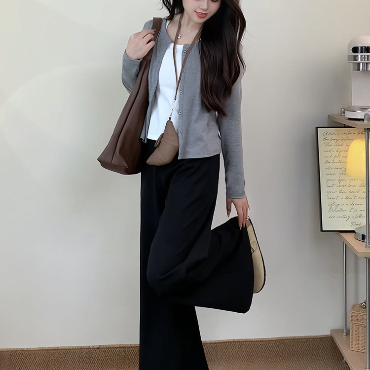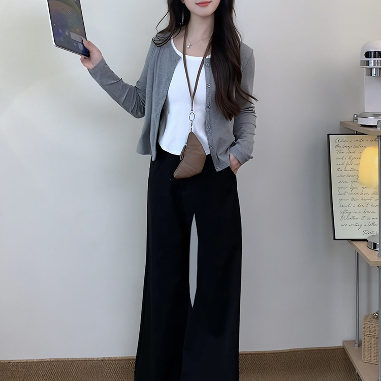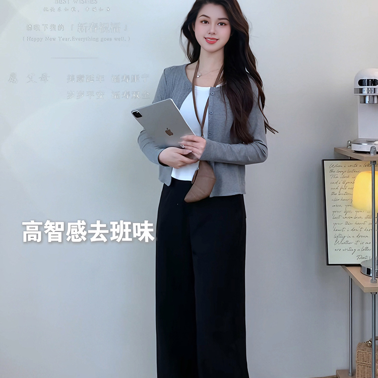 2025春季ins大码显瘦时尚百搭休闲纯色开衫女背心打底超模裤套装