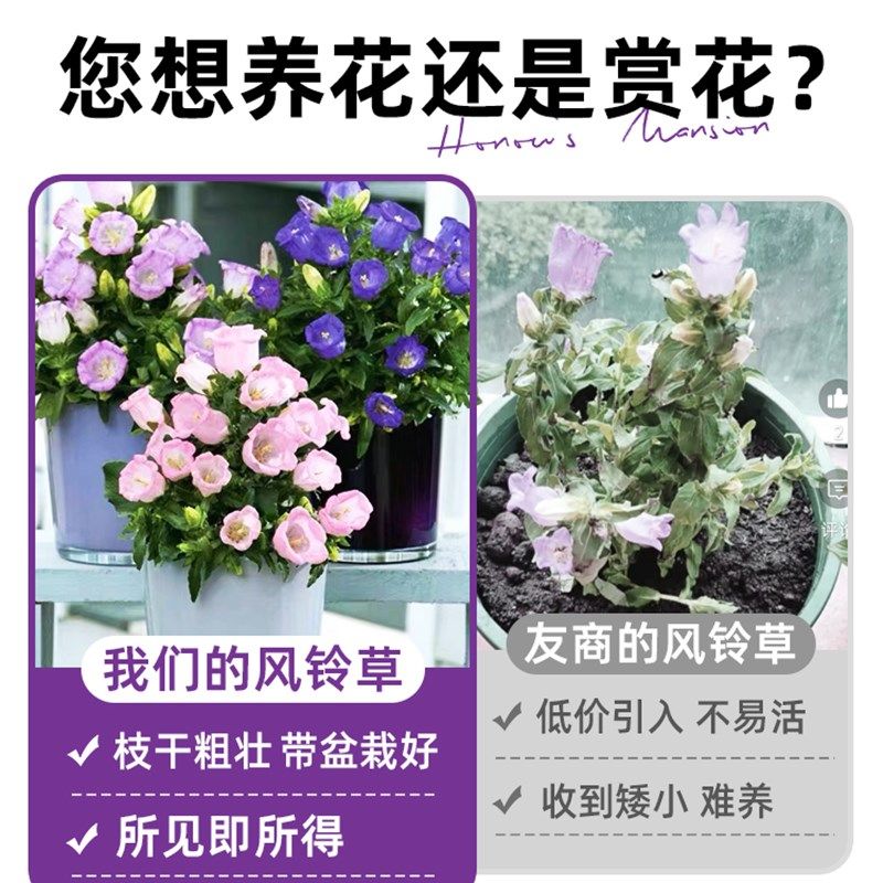 大花风铃草酒杯风铃花盆栽带花苞阳台鲜花庭院绿植紫色风铃花苗