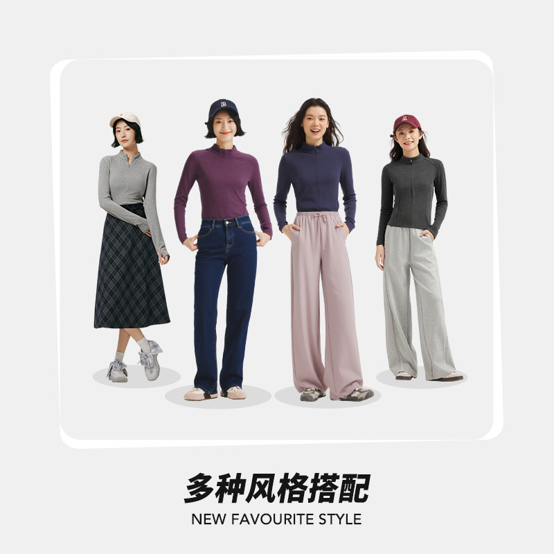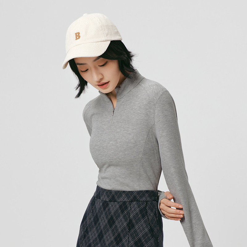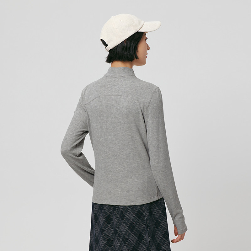 热风女士长袖内搭打底衫上衣2025年冬季新款立领运动风修身上衣