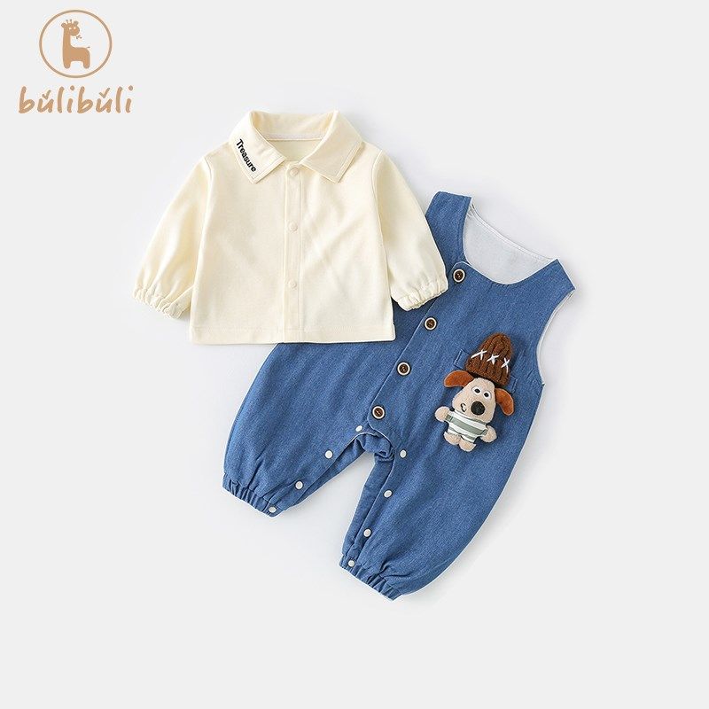 男童牛仔背带裤套装春装25新款洋气男宝宝衬衫春季婴儿衣服两件套
