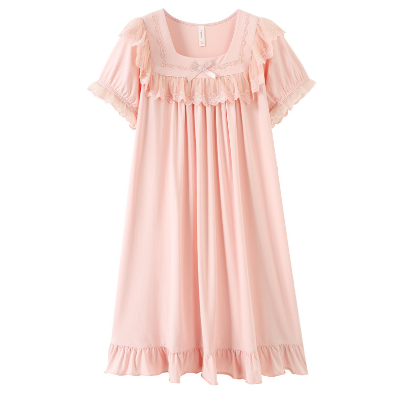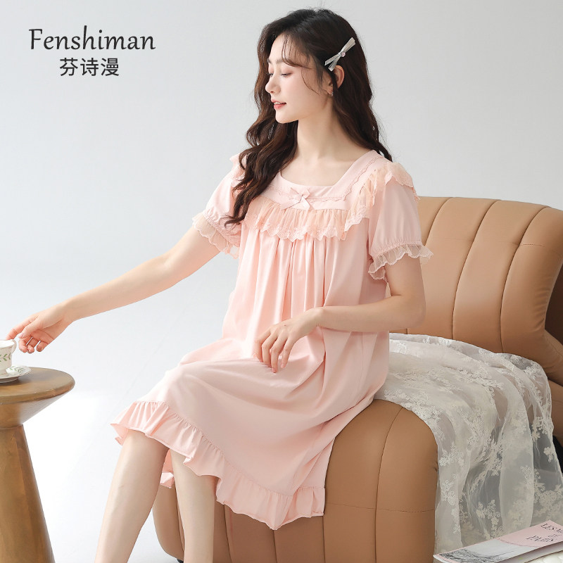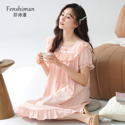 睡裙女夏季纯棉短袖公主风薄款花边睡衣2025新款孕妇高级感连衣裙