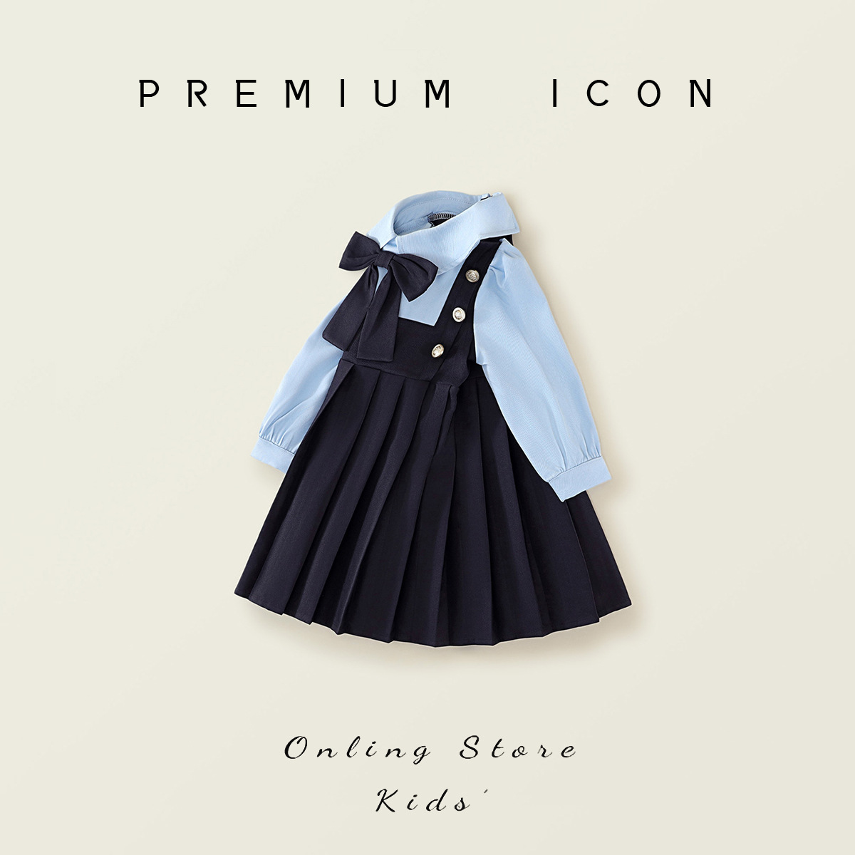 女童学院风假两件长袖连衣裙2025秋季新款儿童韩版蝴蝶结百褶裙11