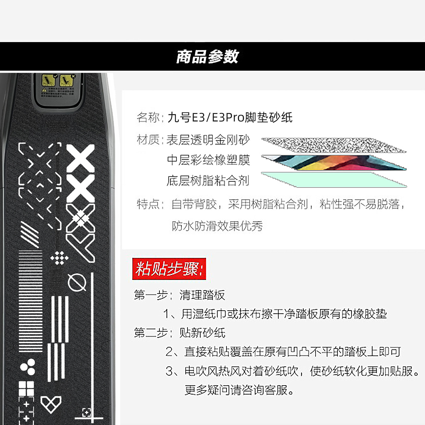 九号滑板车脚垫E3pro/E3脚垫磨砂防水踏板贴纸定制防滑砂纸配件