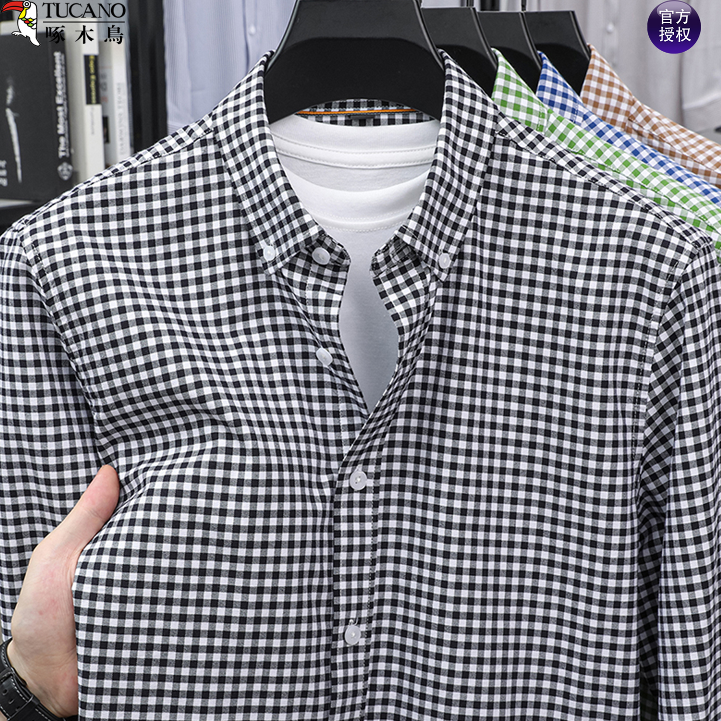 啄木鸟春秋长袖衬衫男士休闲