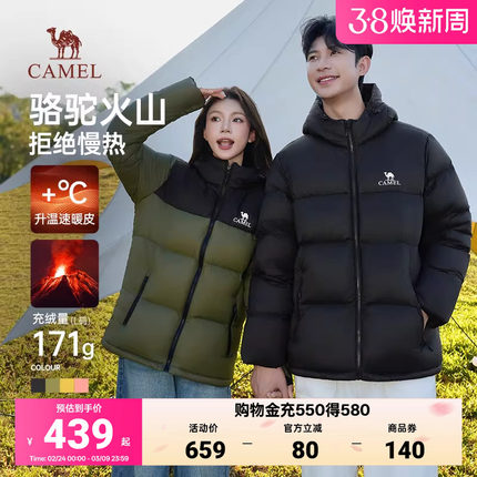 骆驼火山羽绒服男加厚冬季2026连帽短款情侣面包男装防寒外套女
