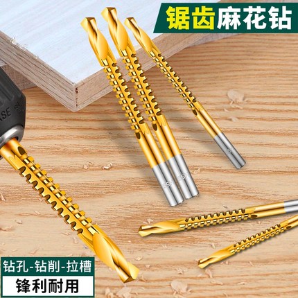 锯齿开槽拉花钻头木工专用手电钻麻花钻多功能切割钻孔扩打孔雕刻