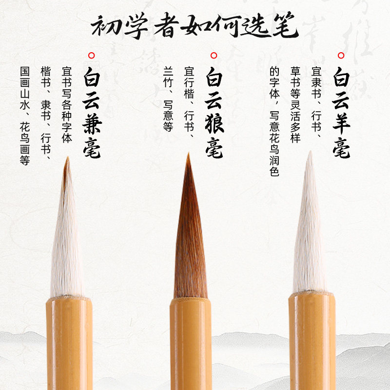 毛笔初学者书法专用国画小楷狼毫白云笔兼羊毫隶行篆书中楷宣纸笔