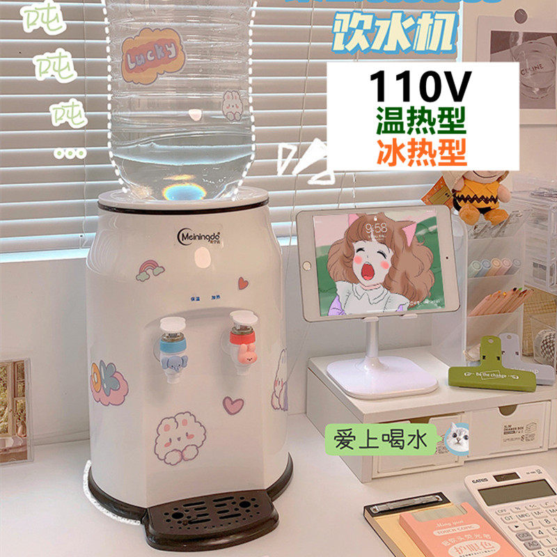 110V桌面饮水机台式小型家用制冷热立式桶装水冰热迷你办公室台湾