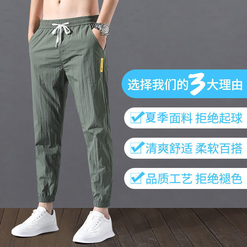夏季休闲裤男士束脚宽松2025新款速干薄款运动裤子青年工装空调裤