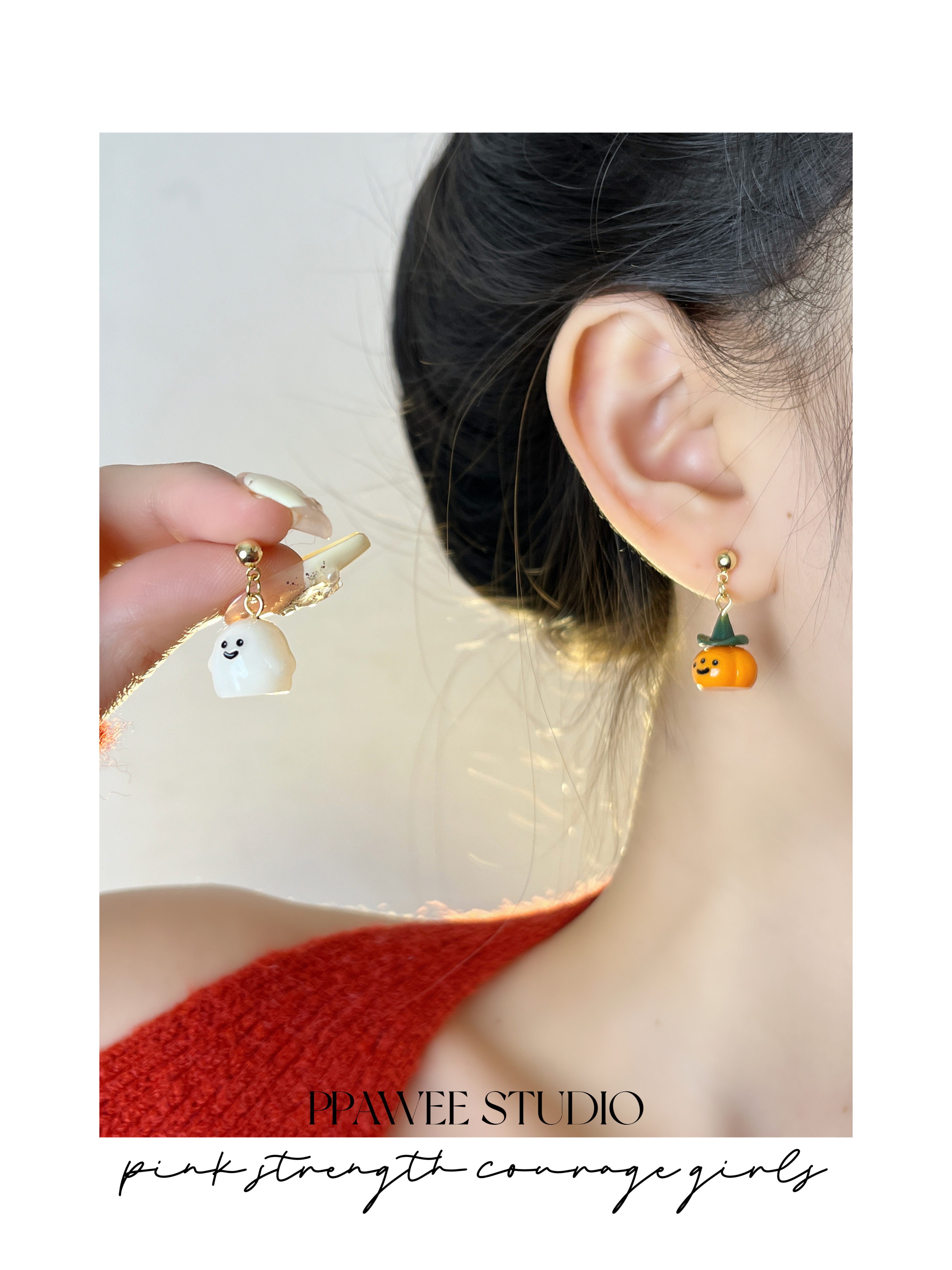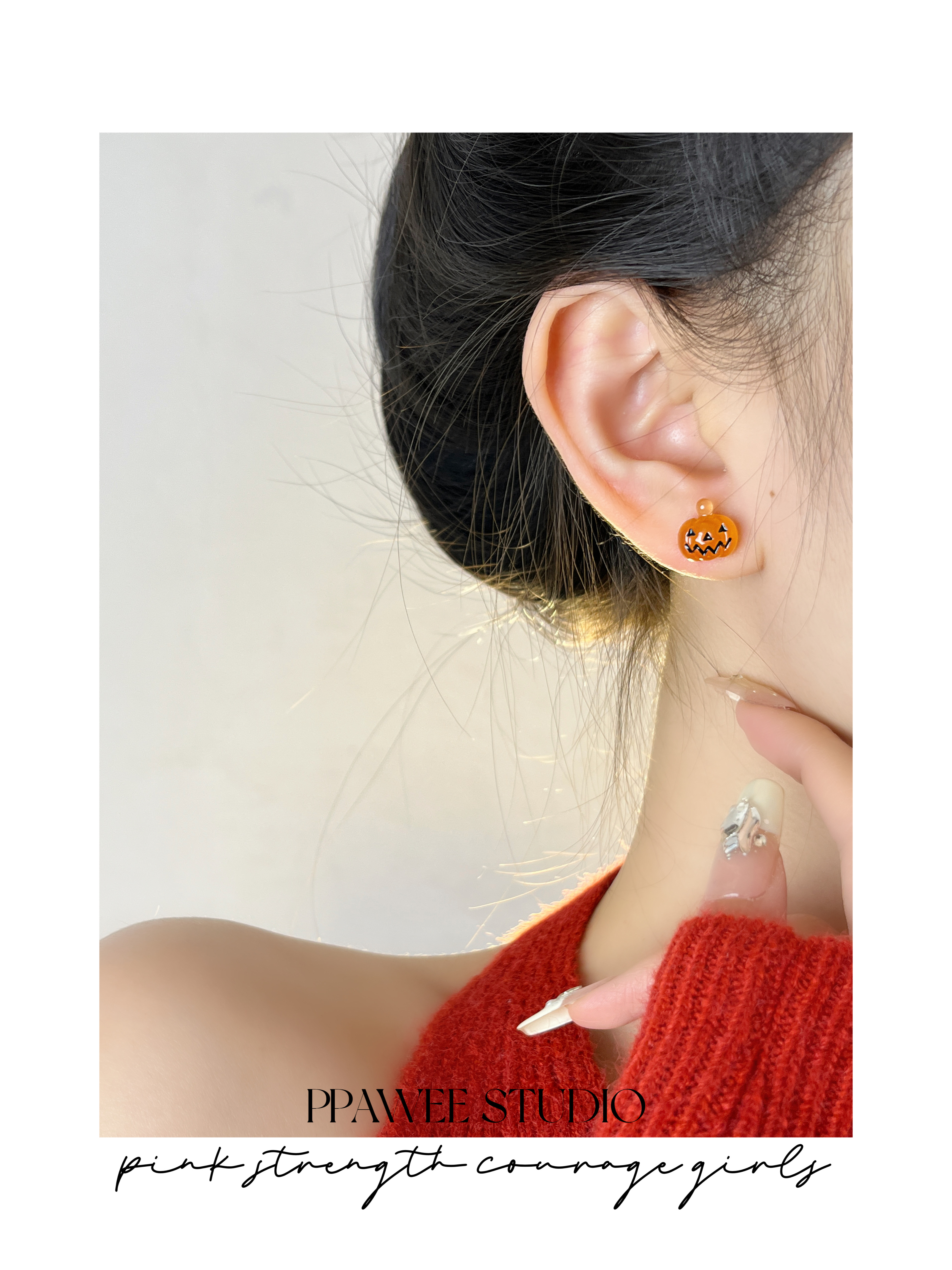 万圣节南瓜小鬼耳环少女幽灵小巧精致可爱耳钉搞怪趣味不对称耳饰