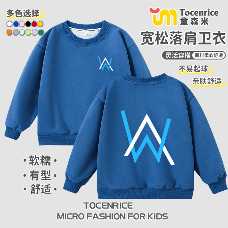 艾伦沃克Alan walker嘉豪圆领卫衣纯棉男女童衣服儿童宽松上衣潮