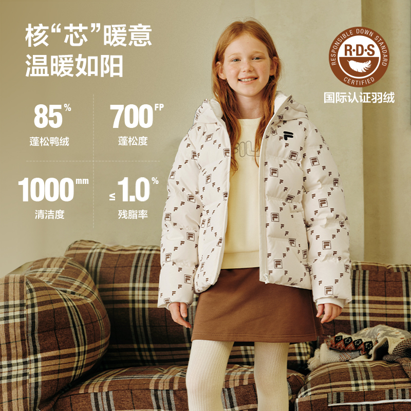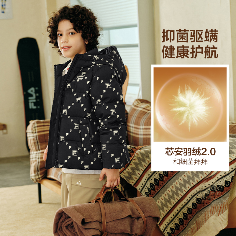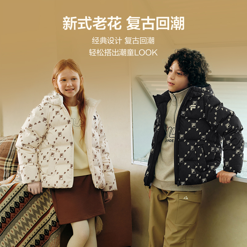 FILA斐乐儿童羽绒服男童2025年冬季新款女童外套满印中大童面包服