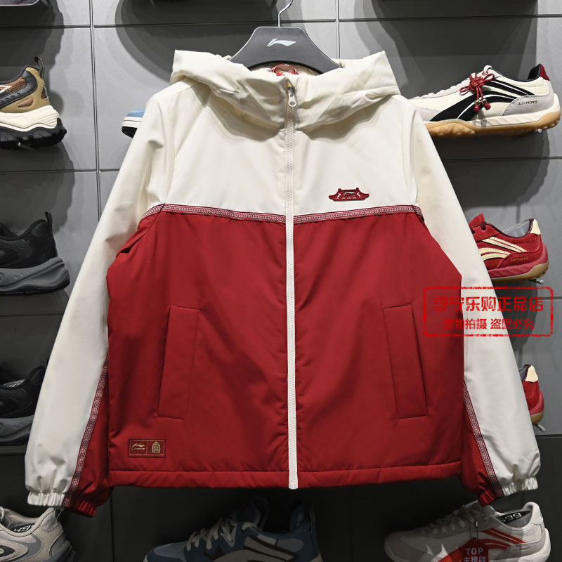 李宁外套2026春季新款女子故宫联名运动保暖夹克连帽棉服AJMW084