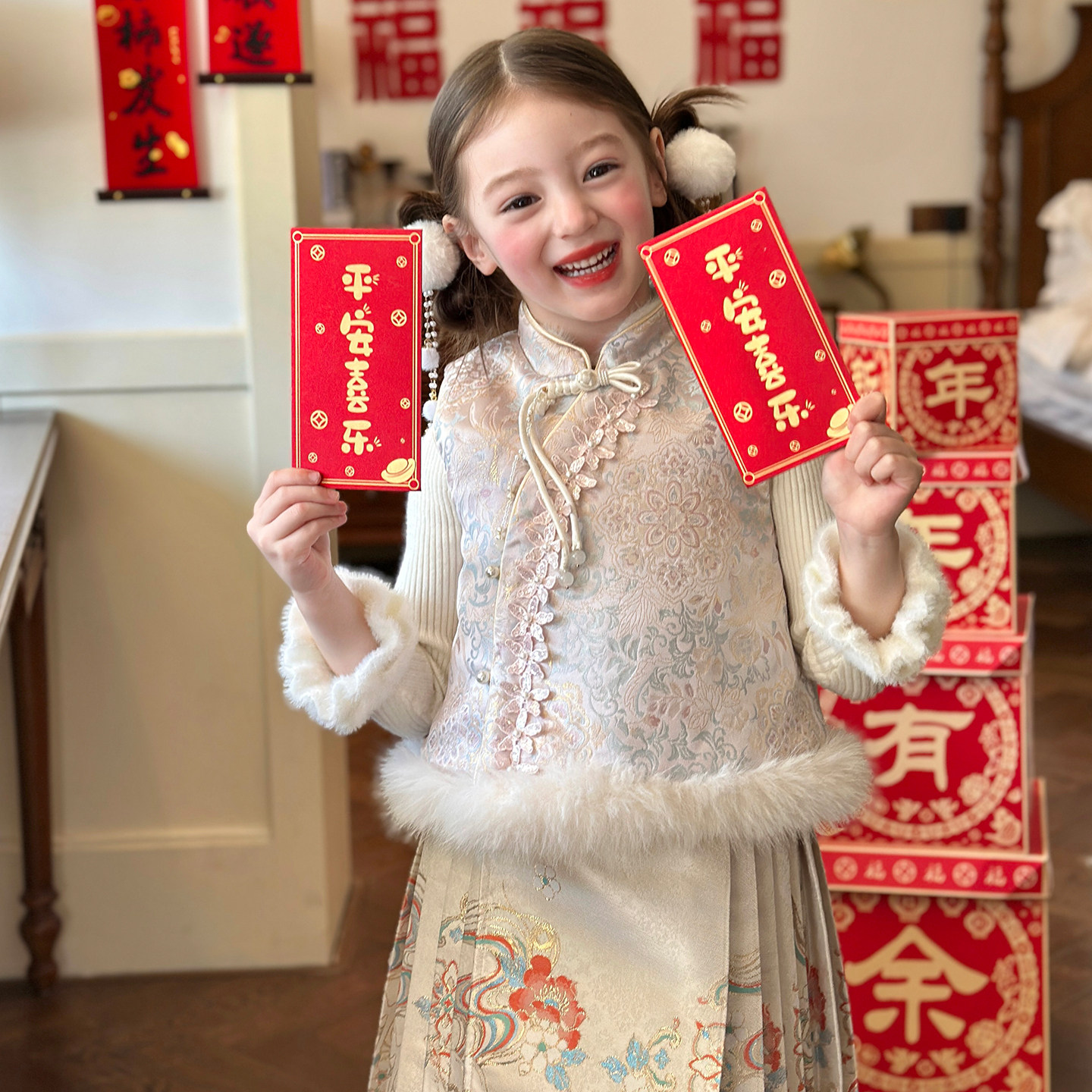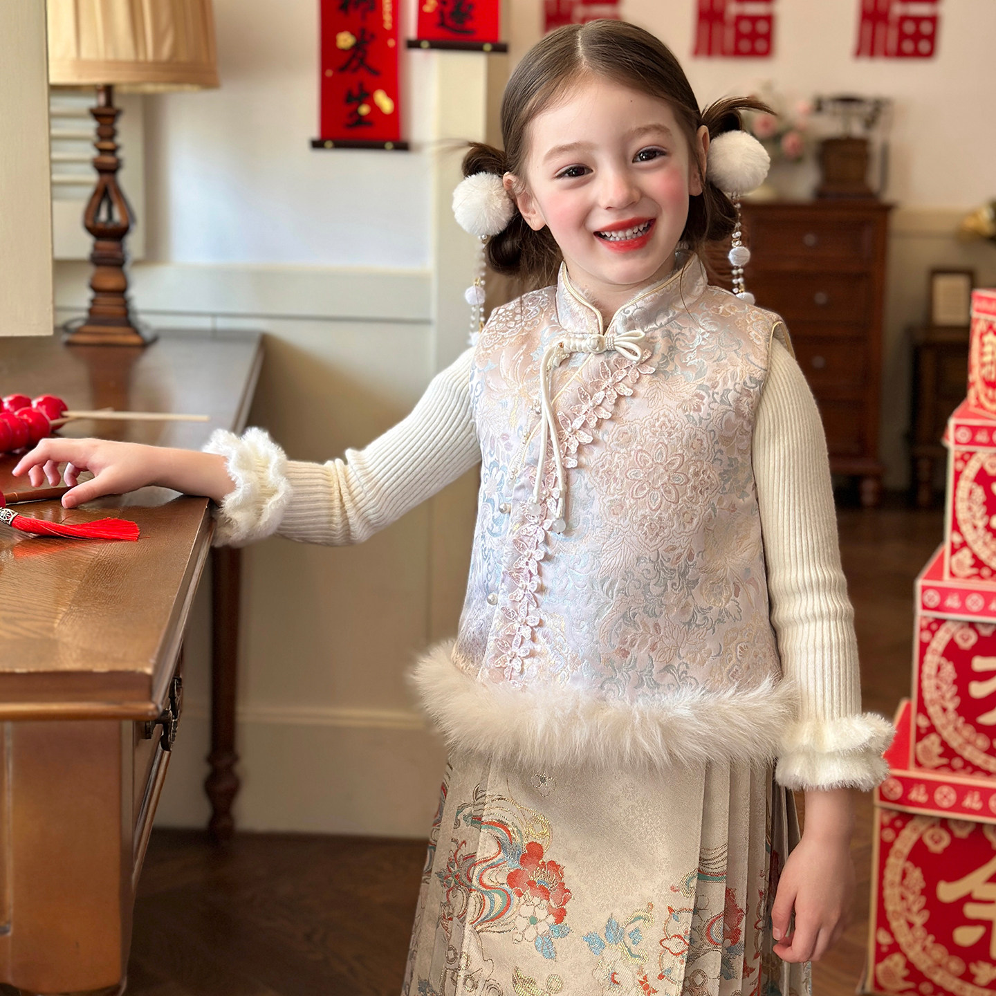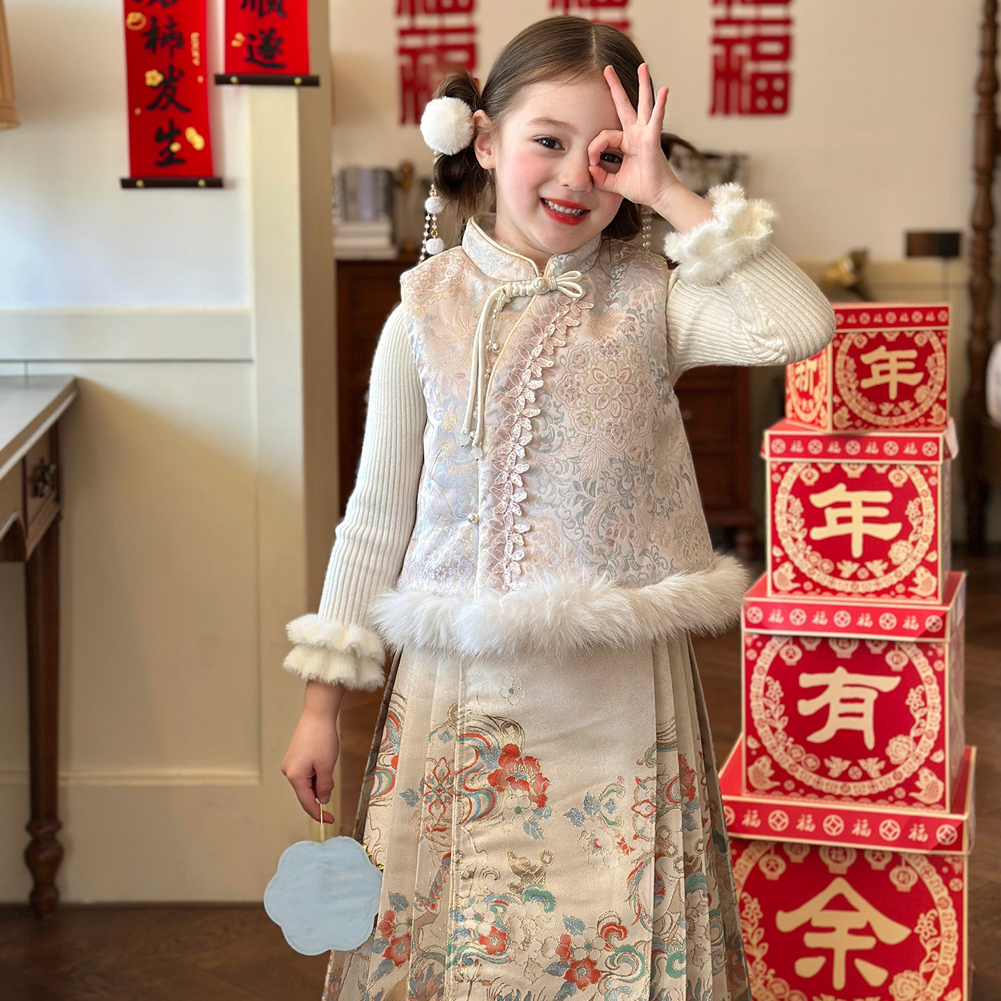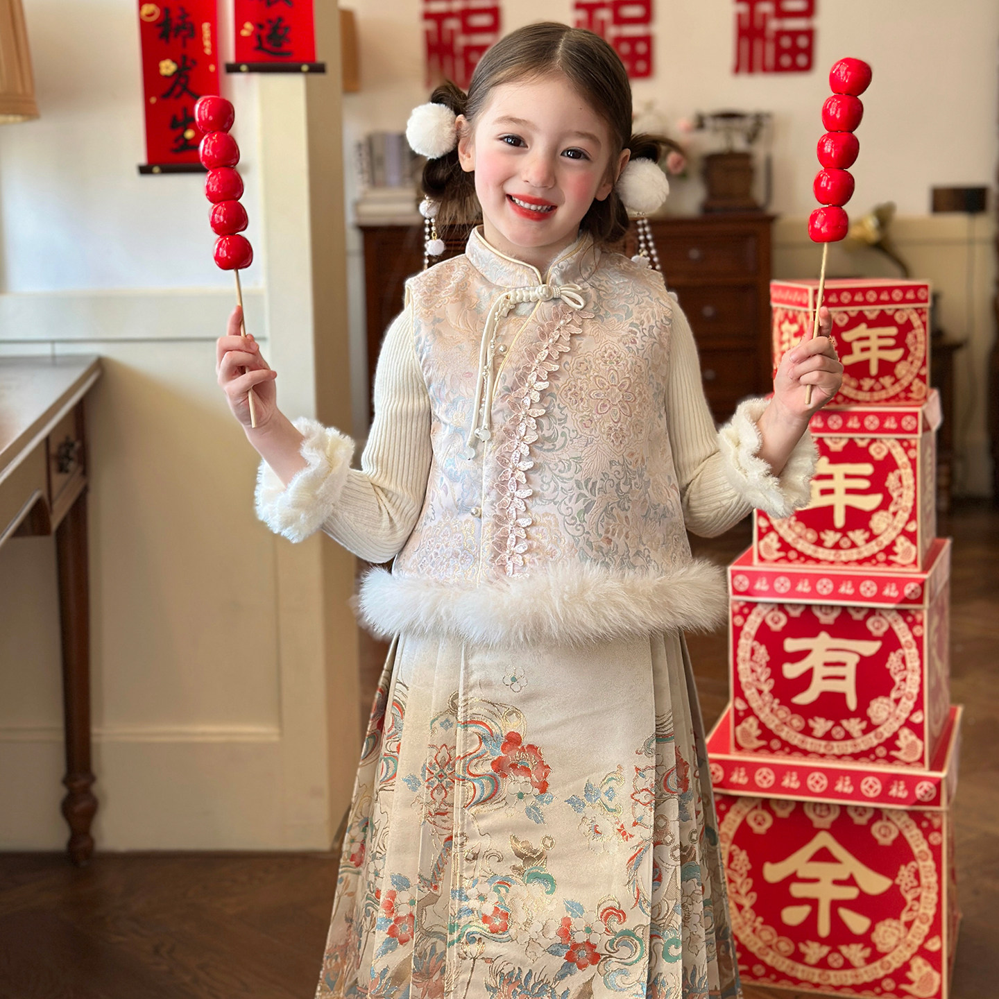 栀了成长记女童冬季国风夹棉马甲