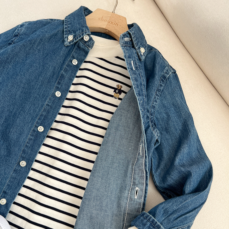 25秋季新款 经典丹宁软牛仔衬衫男童女童中大童长袖衬衣打底