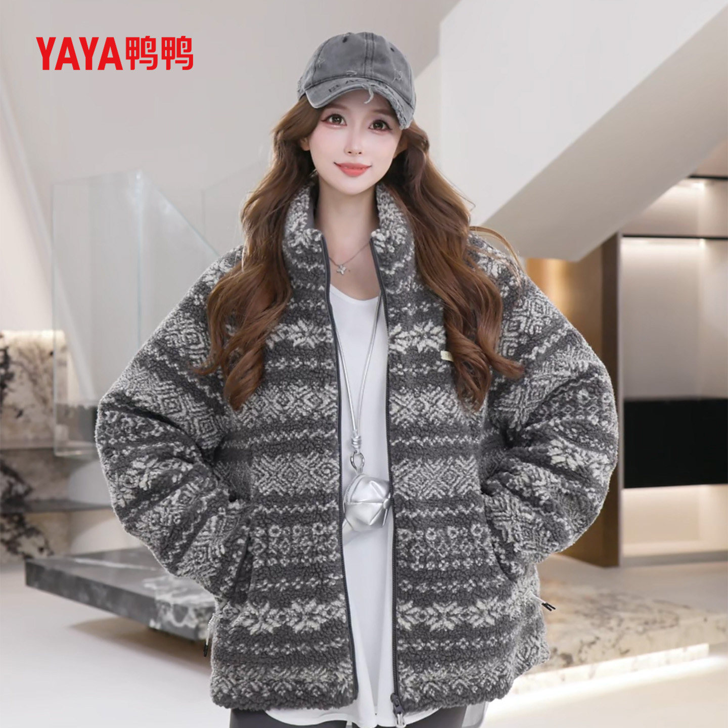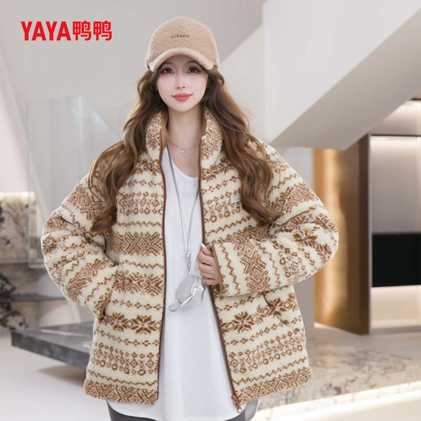【费尔岛元素】YAYA鸭鸭2025冬情侣款摇粒绒一手长休闲百搭羽绒服