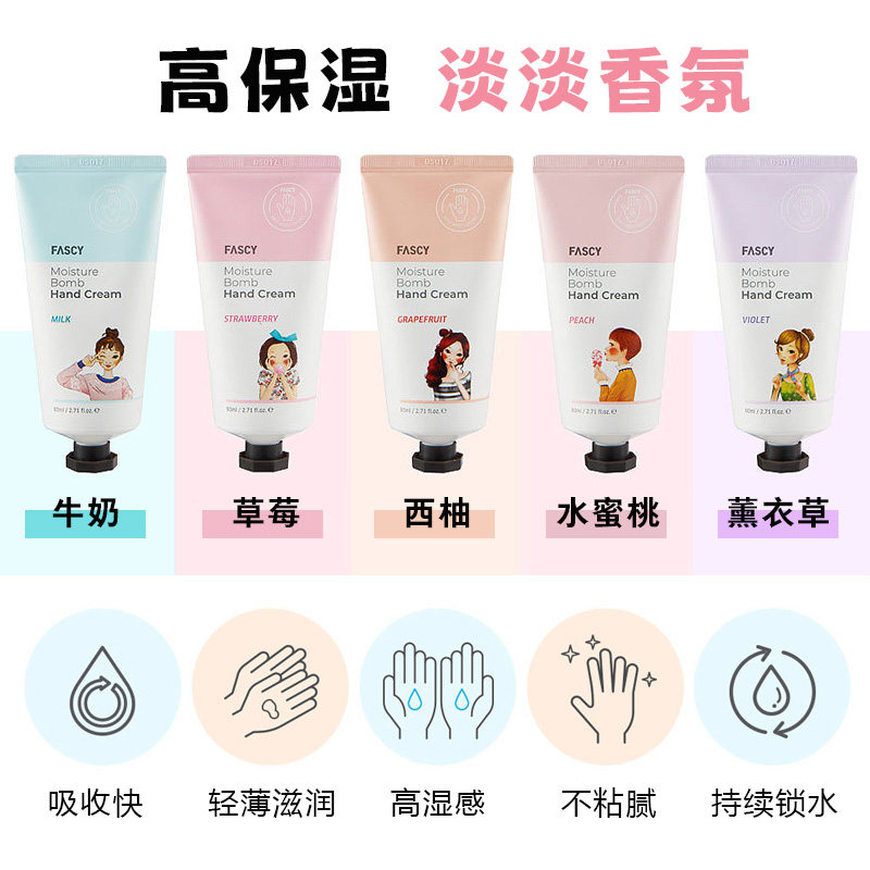 韩国进口FASCY发希倍润护手霜女保湿滋润补水草莓水蜜桃子味秋冬