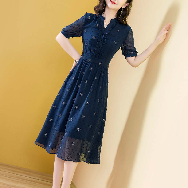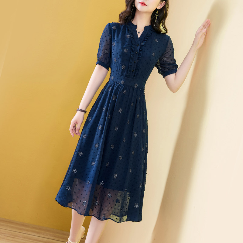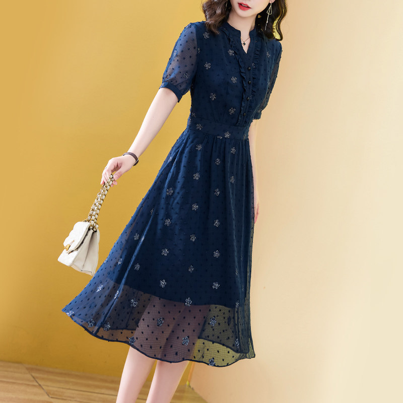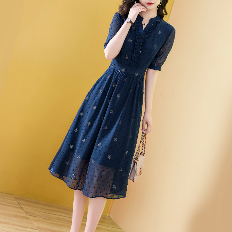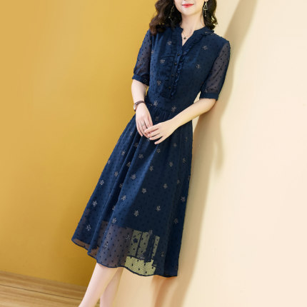 气质名媛高端雪纺碎花连衣裙2025新款女修身印花淑女妈妈时髦裙子
