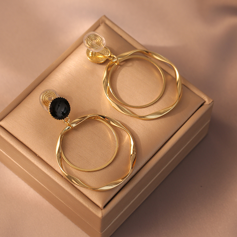 不规则圆环圈圈耳环女复古港风夸张耳钉气质网红蚊香盘无耳洞耳夹