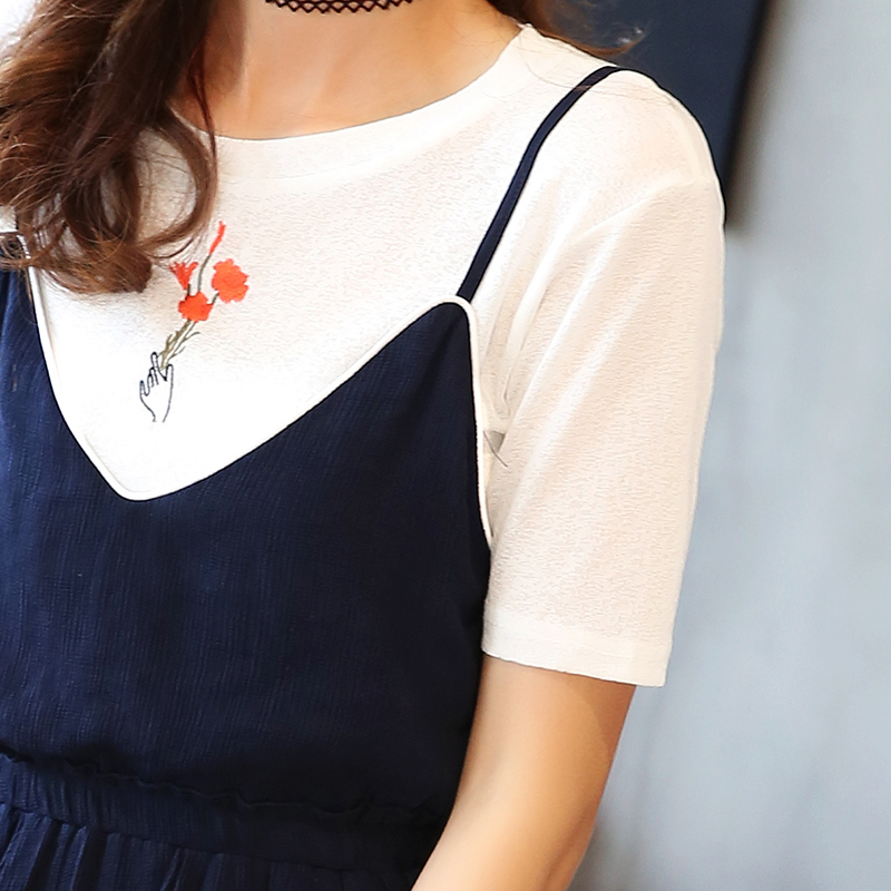 夏季新款韩版显瘦港味连衣裙chic两件套女装气质裙子吊带套装