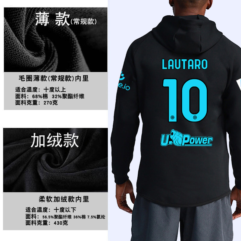 25-26赛季国际米兰队服劳塔罗足球衣服国米开衫卫衣男女连帽外套