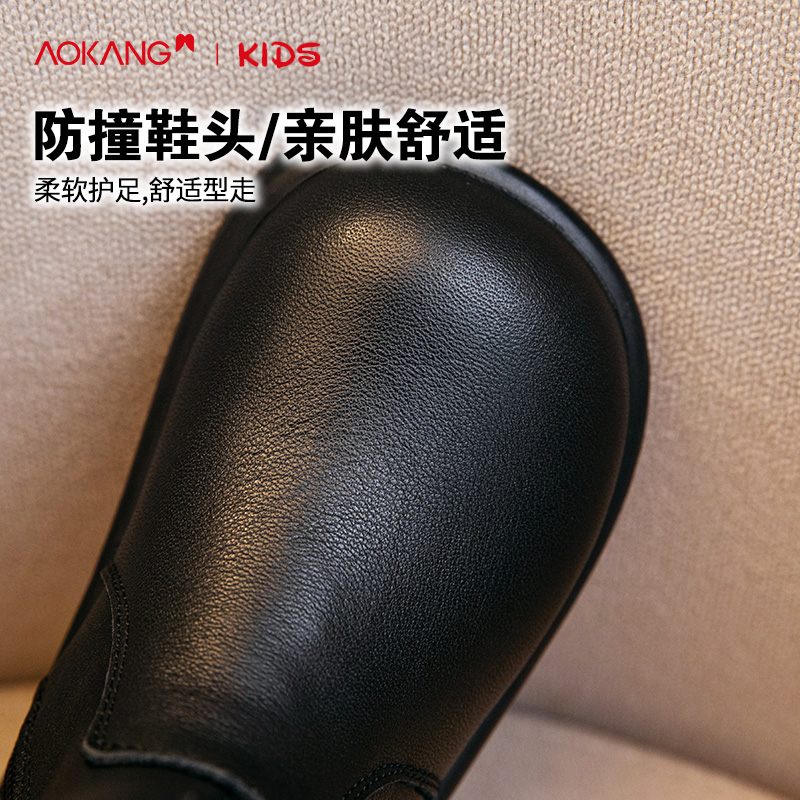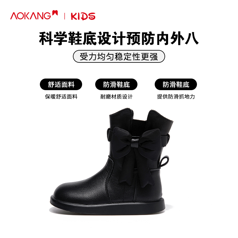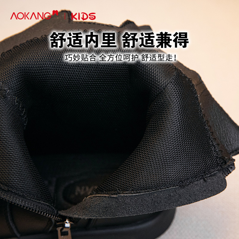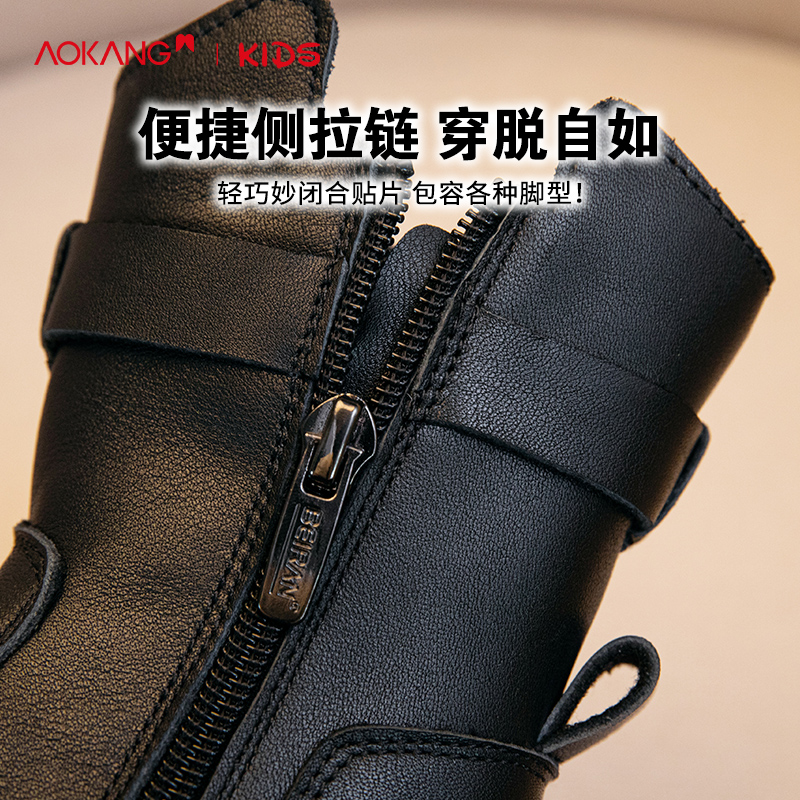 奥康女童靴子软底2025秋冬新款儿童公主马丁靴加绒二棉真皮高筒靴