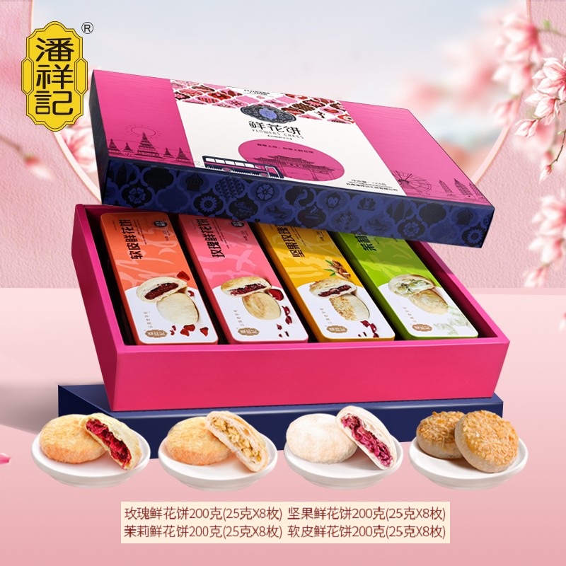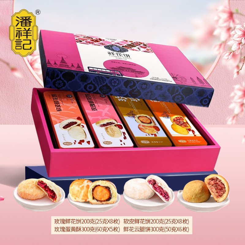 潘祥记经典多味综合送礼铁盒装茉莉坚果蛋黄糕点鲜花云腿玫瑰月饼