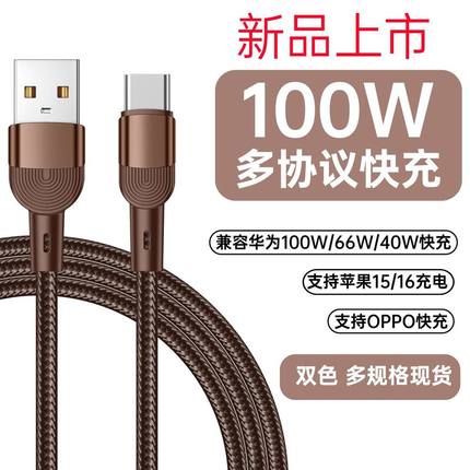 100W TYPEC超级快充充电数据线手机通用适用苹果iPhone15/16华为Oppo小米Vivo三星USB双TYPEC快充线加长2M米