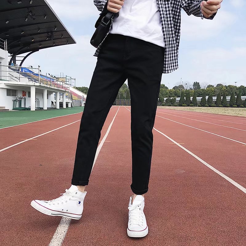 破洞牛仔裤男春夏弹力修身小脚裤子男韩版潮流9分黑色九分乞丐裤