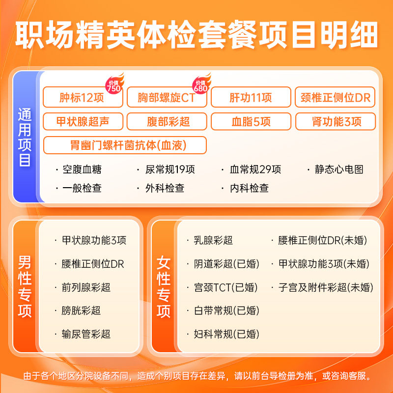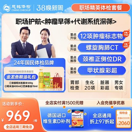 慈铭体检 中青年成人体检职场精英套餐 肿瘤彩超男女通用体检报告