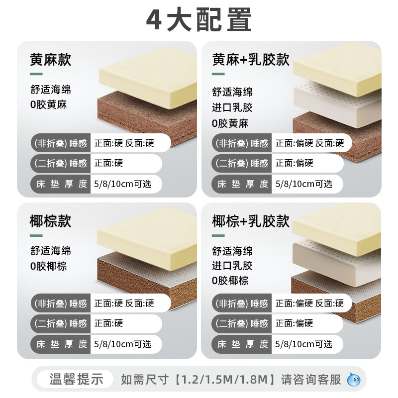 【硬核定制】雅兰乳胶床垫黄麻儿童护脊硬垫椰棕大学生宿舍薄垫