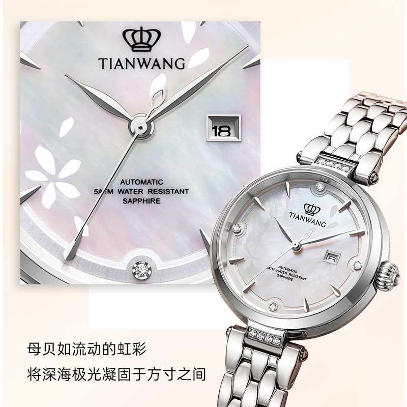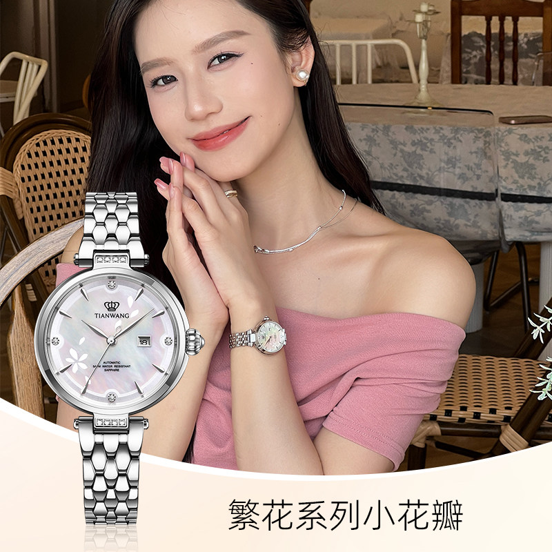 天王表小花瓣女表繁花系列51176轻奢母贝自动机械手表女生礼物