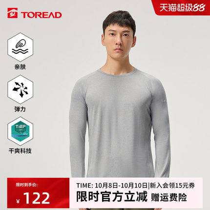 探路者长袖T恤男春秋新款户外运动亲肤透气轻薄透气休闲弹力长袖