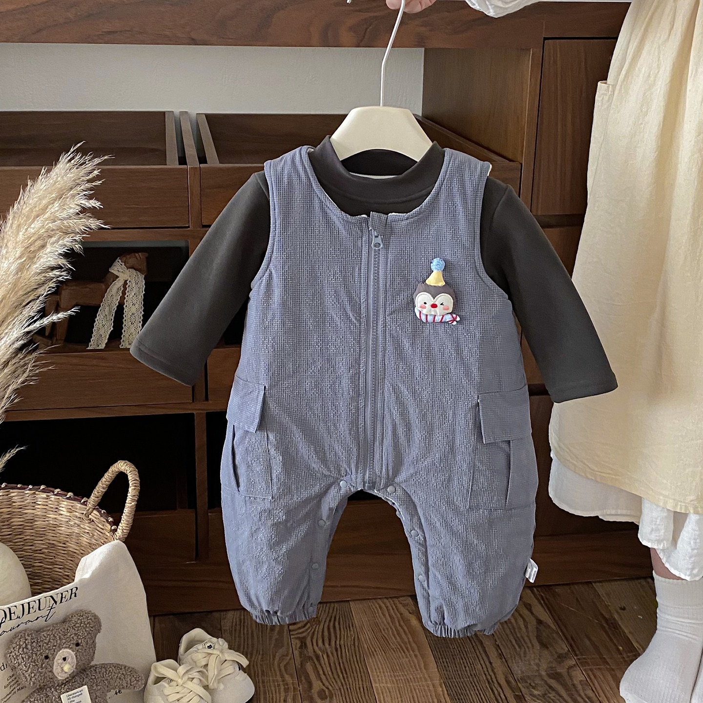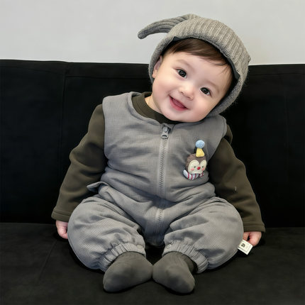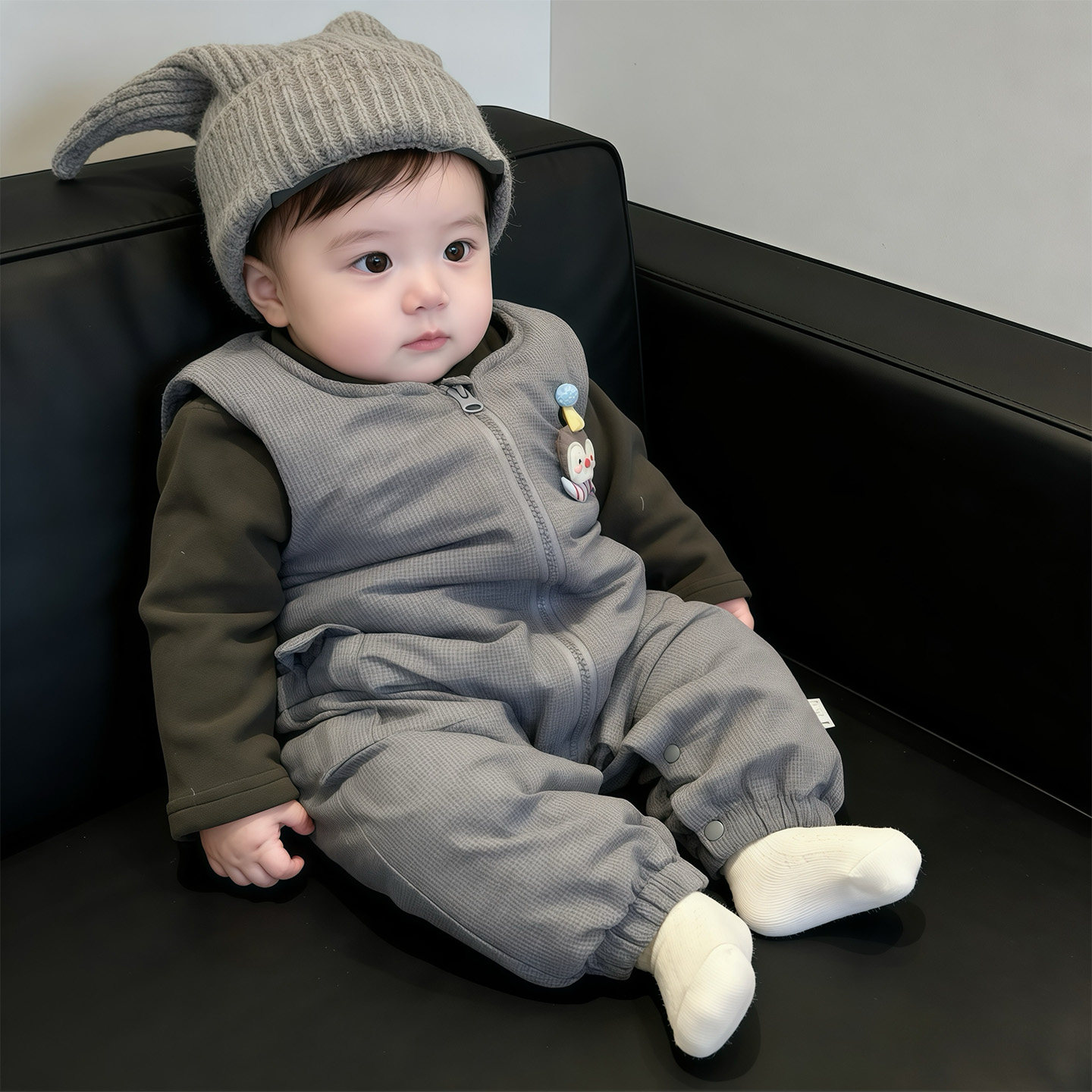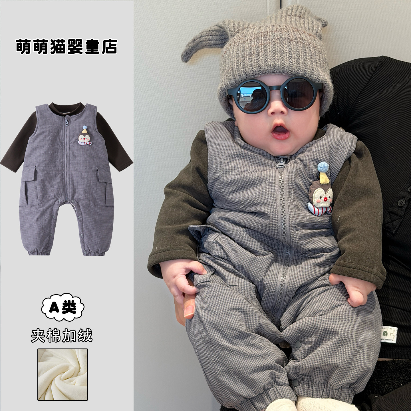 男童背带裤套装冬装2025新款婴儿连体衣宝宝加绒保暖两件套冬季